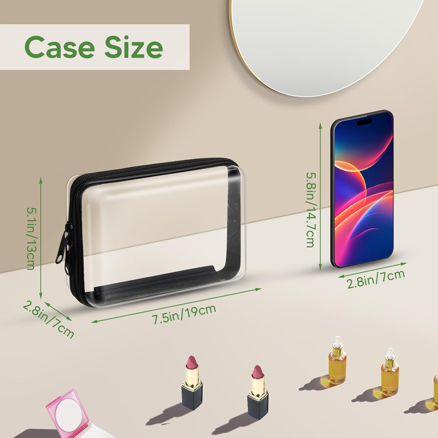 • HIGH QUALITY MATERIALS: The hard shell clear pouch are made from premium hard PC material, ensuring reliability and durability. It is more durable and convenient kit ensures that your travel makeup or toiletries well organized. No longer worry about travel toiletry bag splitting easily and cosmetics spread anywhere!