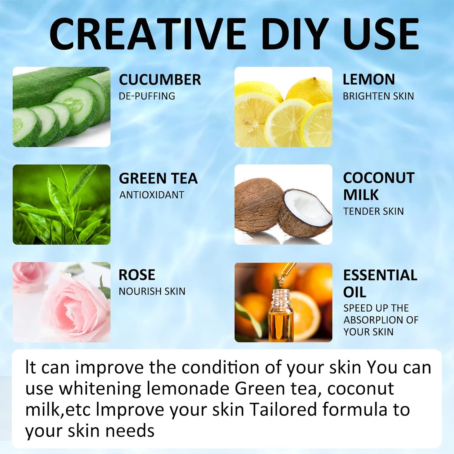• 【Creative Formula】-- You can use lemon water for whitening, coconut milk for anti-aging, cucumber water for puffiness, green tea for anti-inflammation, aloe vera for acne-prone skin and sunburn, rose essential oil for tightening pores; Creatively tailor the recipe to your skin needs.