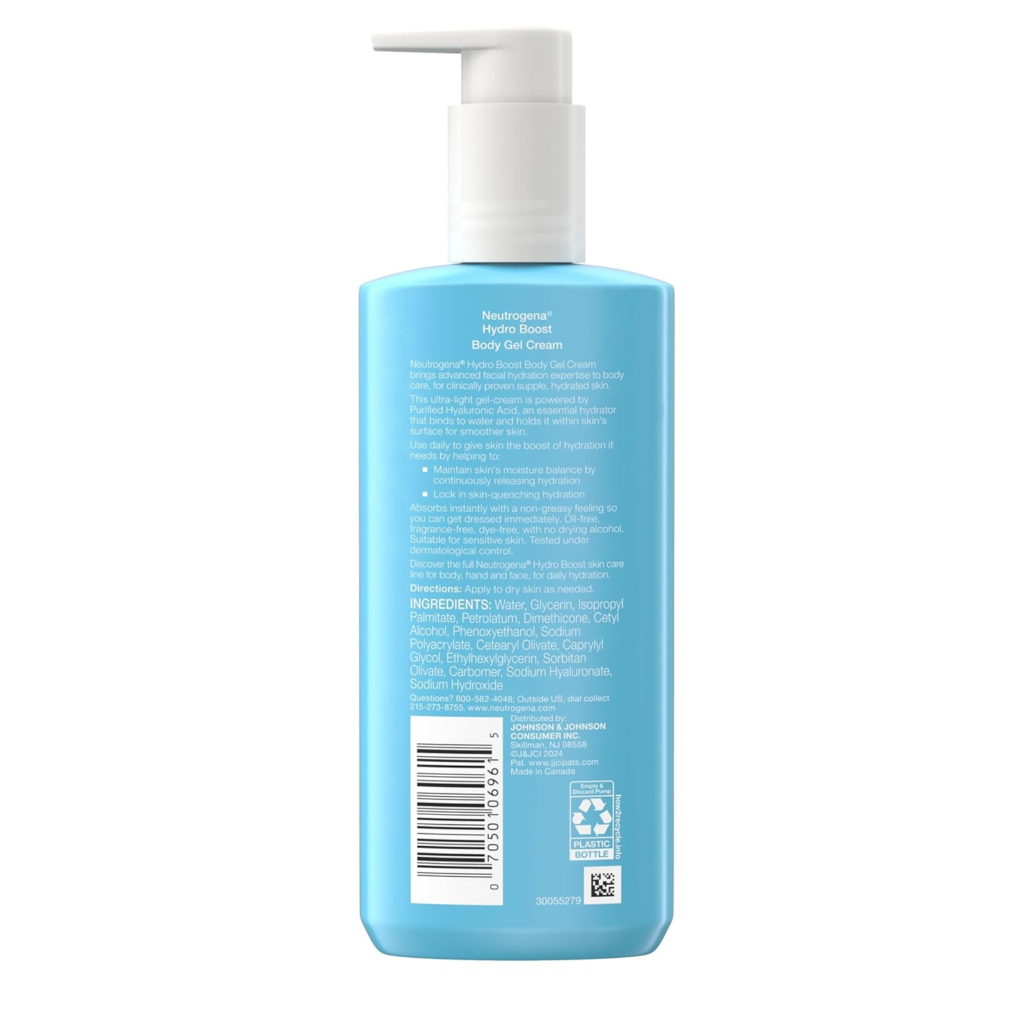 Neutrogena Hydro Boost Body Gel Cream Moisturizer with Hyaluronic Acid, Hydrating Lotion For Sensitive Skin, Fragrance Free, 8.5 oz