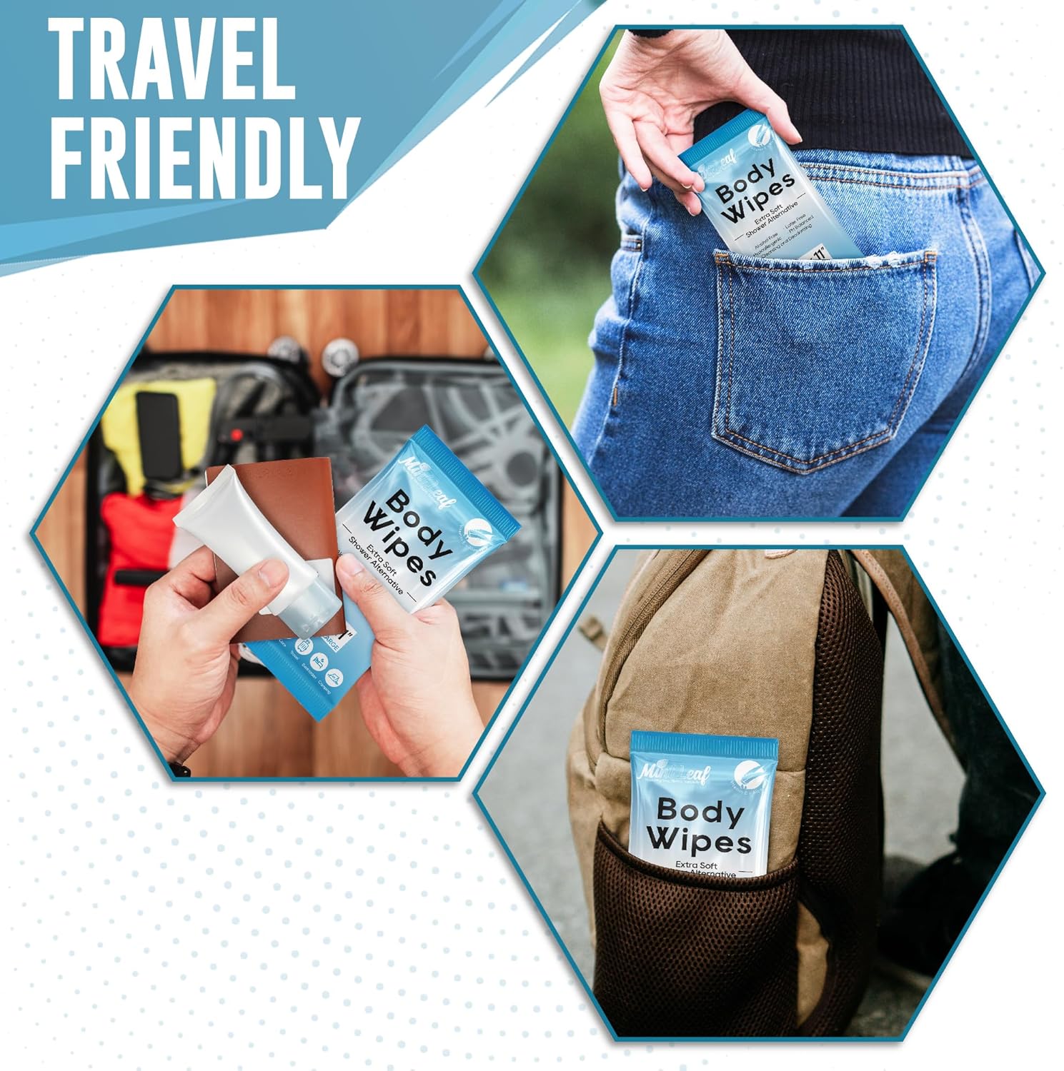 • CAMPING & TRAVEL FRIENDLY – Stay fresh anywhere with body wipes that remove sweat, dirt, and odor without water or soap—perfect for camping, hiking, and long trips.