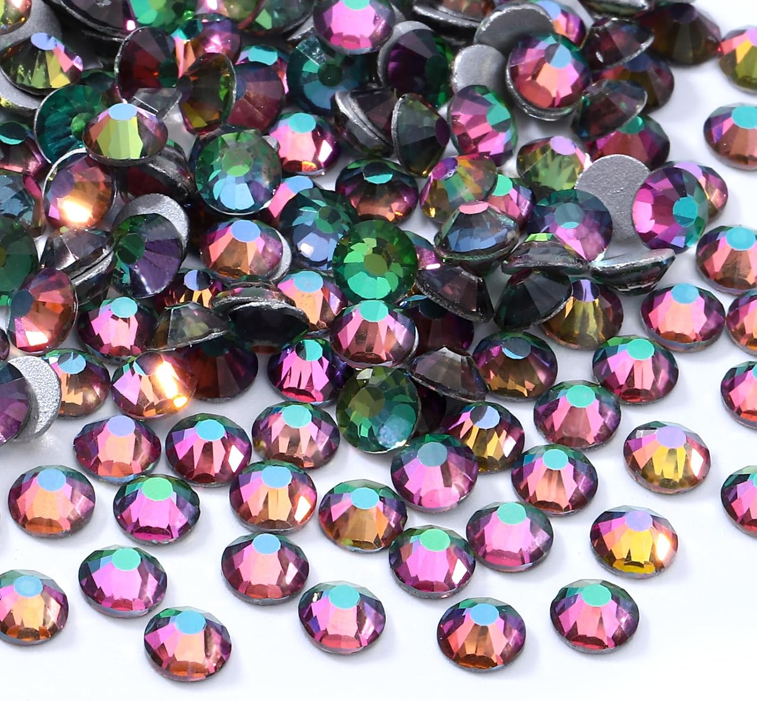 Green Volcano Flatback Rhinestones, Glass Rhinestones for Nail Art and Craft, Glue Fix, Loose Crystal Gemstones(Green Volcano, SS12, 1440pcs, 2.9-3.0mm)