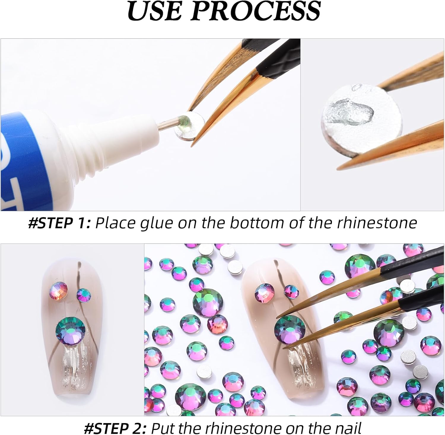 • Use tweezers and Picking Pen gem picker to pick rhinestones, There is no glue on the bottom, additional nail gel is required, or other professional glue for makeup or nails; Can use E6000/E7000 super glue to fix on crafts, art decoration; not hotfix