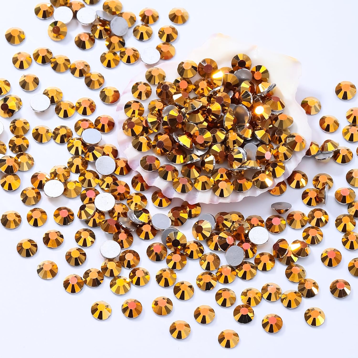 Gold Flatback Rhinestones, Glass Rhinestones for Nail Art and Craft, Glue Fix, Loose Crystal Gemstones(Gold, SS16, 1440pcs, 3.8-4.0mm)