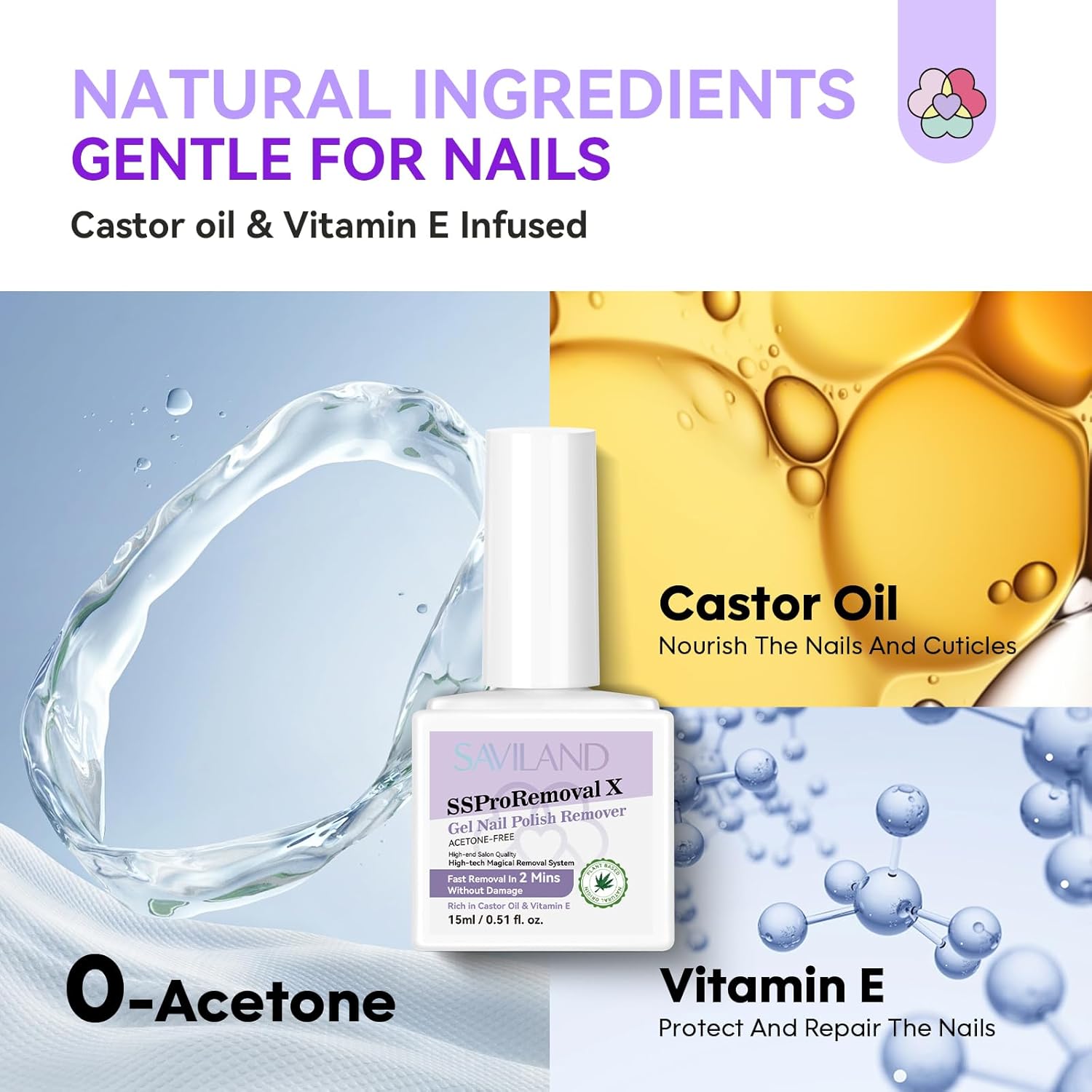 SAVILAND Gel Nail Polish Remover Kit: 2Pcs SSProRemoval X Fast Gel Remover in 2 Mins Castor Oil VE Gel Nail Remover for Acrylic Dip Nails with Complete Removal Tools Home Salon Use Home