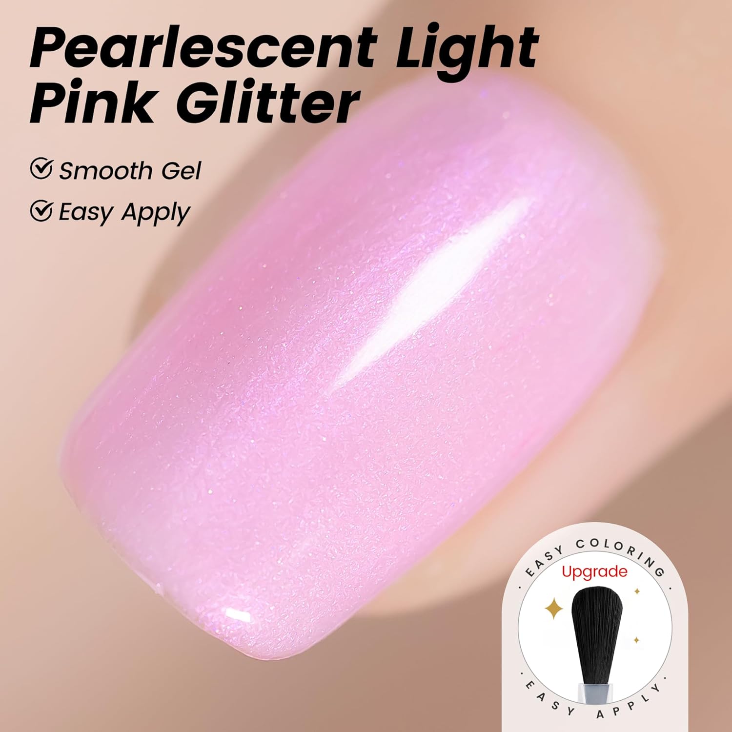 YTD Likomey Gel Nail Polish,15ml Pearlescent Light Pink Glitter Nails Gel,Fall Winter Pastel Pink Shimmer Shiny Sparkly Salon Home DIY Manicure UV Color Varnish,SF408