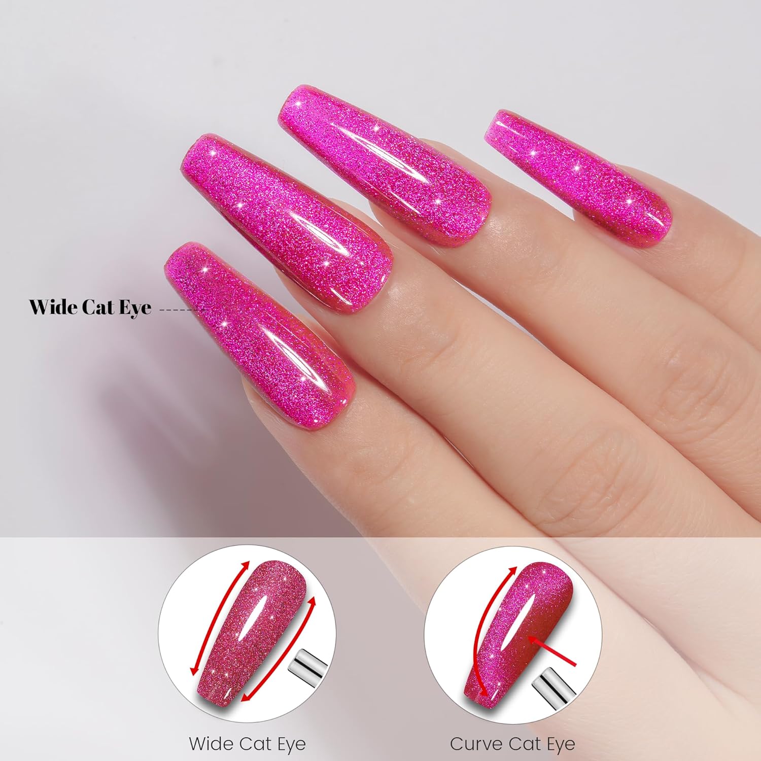 • Glitter Cat Eye Gel with Magnet Stick: The gel contains more upgraded high-gloss magnetic glitter for better shine and sparkle. With the magnet stick and refer to the tutorial for more practice, you can DIY a variety of cat eye patterns with lots of fun.