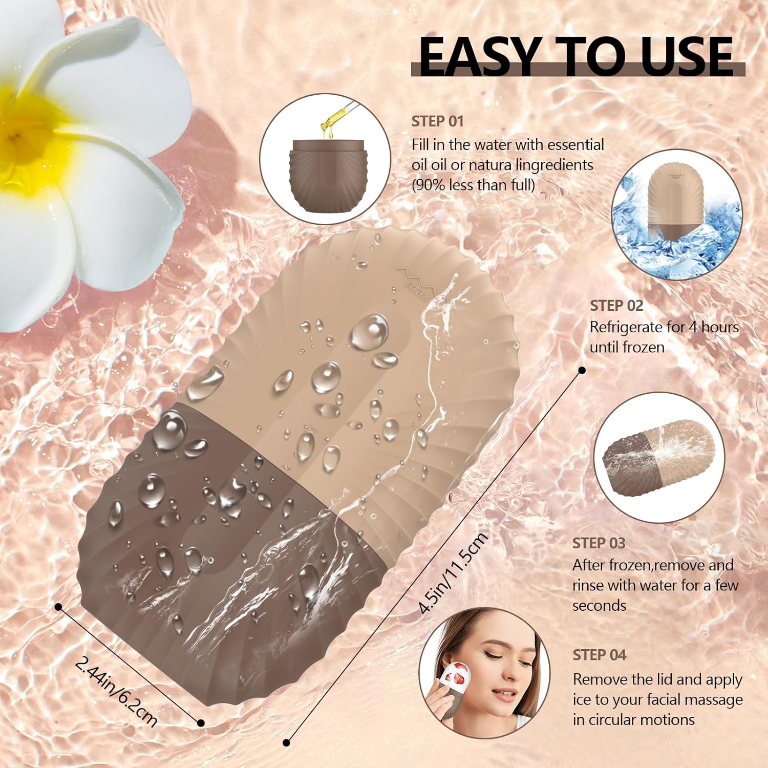 Ice Roller for Face and Eye, Silicone Ice Facial Roller Ice Holder, Face Ice Mold Skin Care, Face Icers Reusable Ice Cube Roller for Shrink Pores Anti Wrinkle Reduce Puffiness, Brown