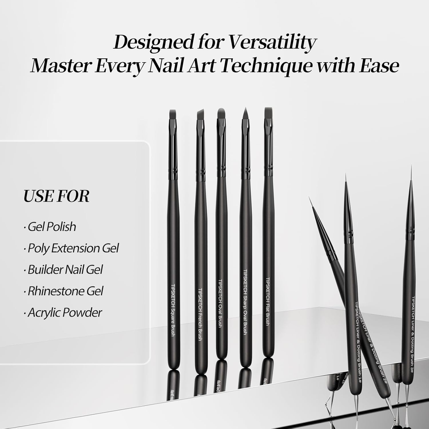 • 【Wide Range Use】Craft stunning nail art with Tipsketch's diverse brush set, perfect for 3D effects, UV gel, French tips, extensions, florals, and gradients.