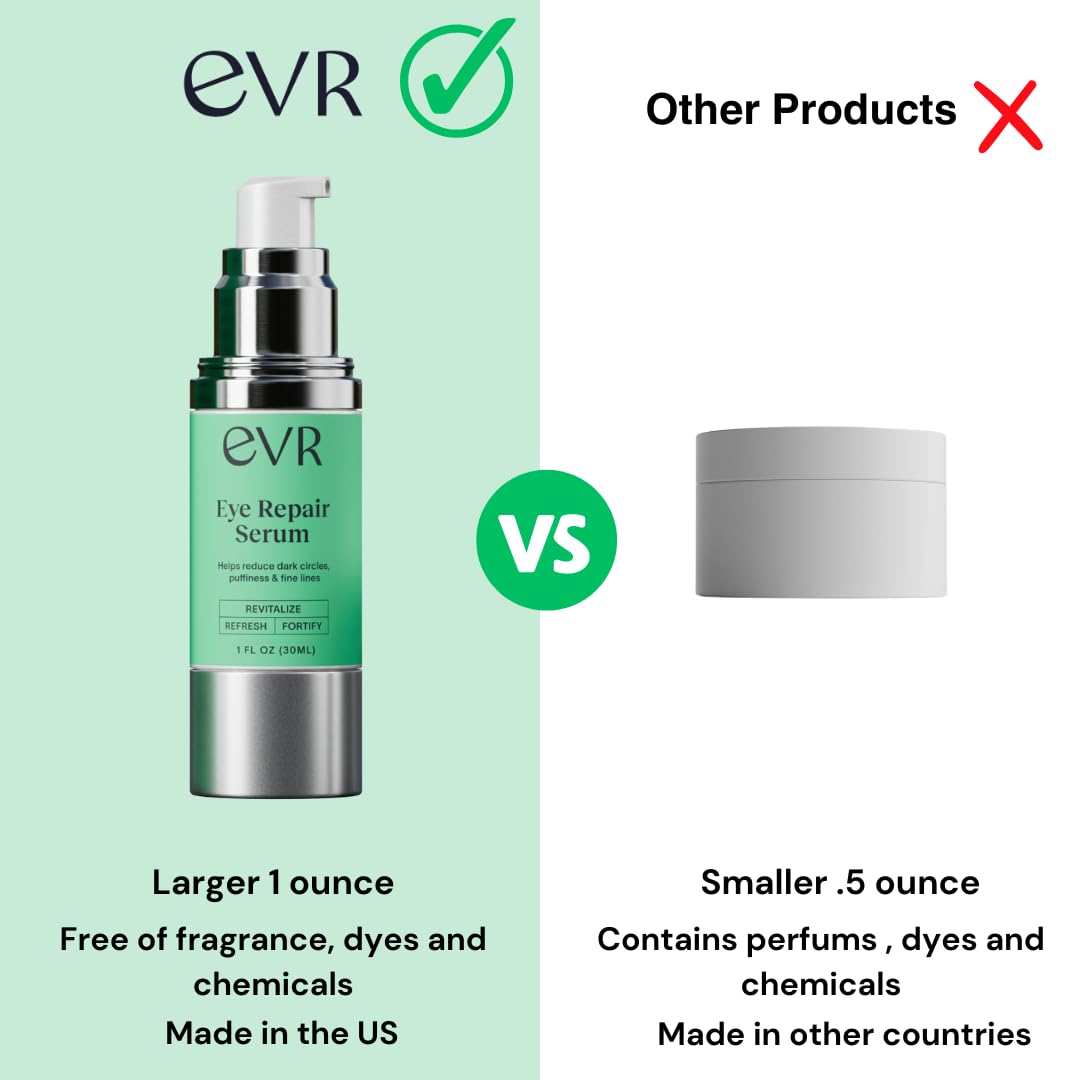• INTENSE HYDRATION: EVR Beauty's anti-aging eye cream provides intense hydration and moisture, diminishing puffiness and under-eye bags while aiding in reducing the visibility of wrinkles. This fast-absorbing under eye brightener promotes skin lifting, hydration, and firmness for a rejuvenated appearance.