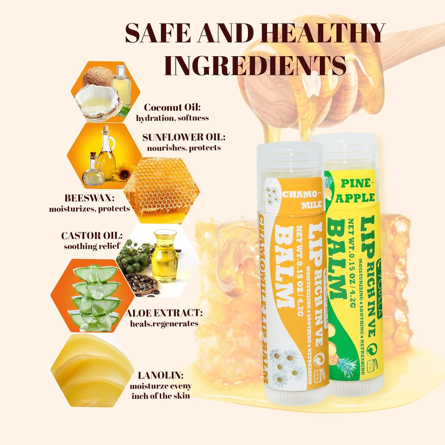 • Indulge in 9 Exquisite Flavors - Treat your lips to a variety of delightful flavors including Strawberry, Cremebrulee, Chamomile, Cake, Pineapple, Mint, Vanilla, Honey, and Coconut. Perfect for the whole family and makes a wonderful lip balm
