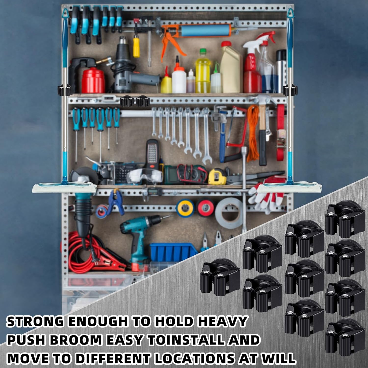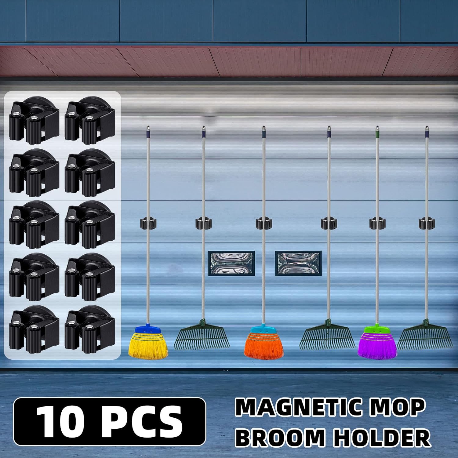 10 Pcs Magnetic Mop Broom Holder Movable Magnetic Broom Holder Rack, Anti Slip Wall Mounted Utility for Cleaning Tools, Garage, Kitchen, Laundry, Garden (Black)