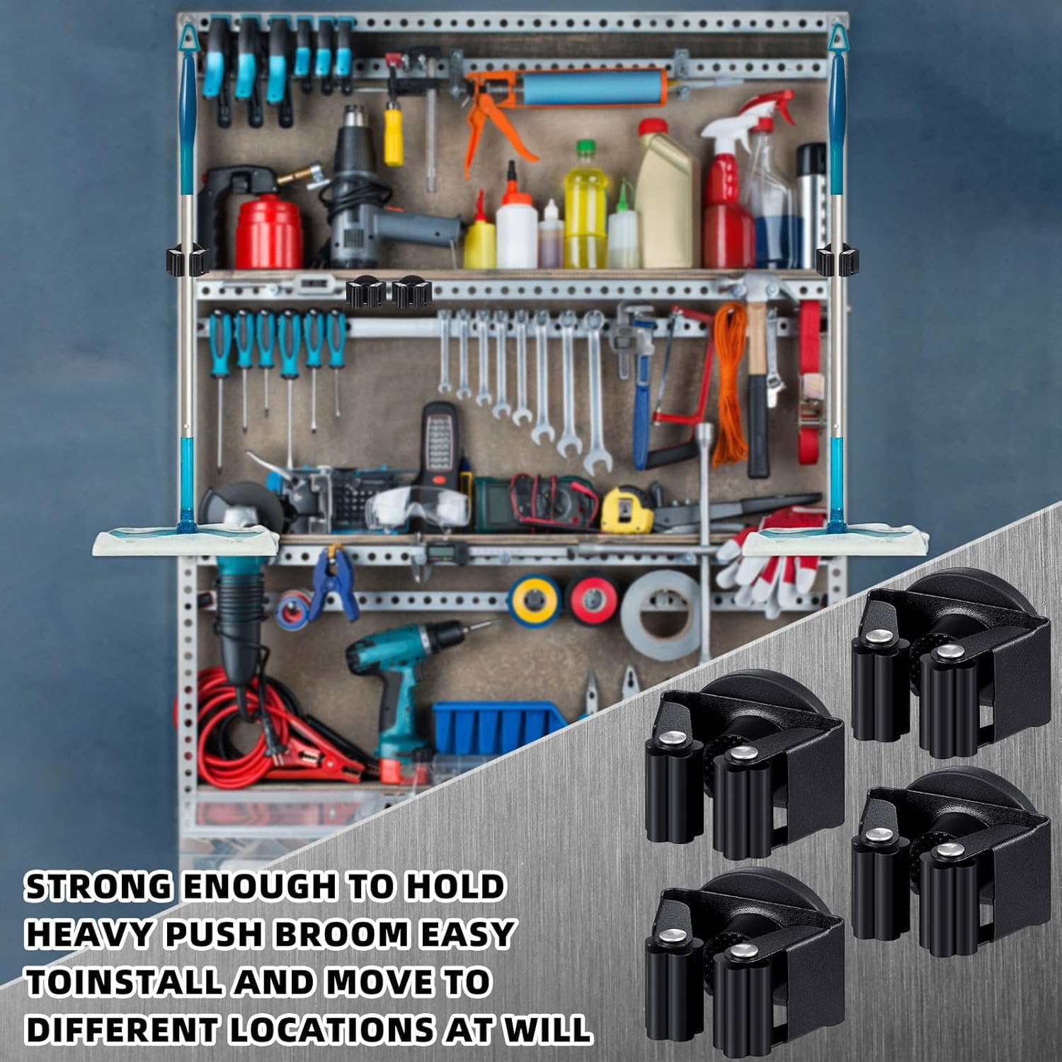 • Moveable Design: this broom and mop holder feature a moveable design, offering the flexibility to adjust the arrangement to suit your preference or needs; Enjoy the convenience of customizing your space and keeping your cleaning tools exactly where you want them