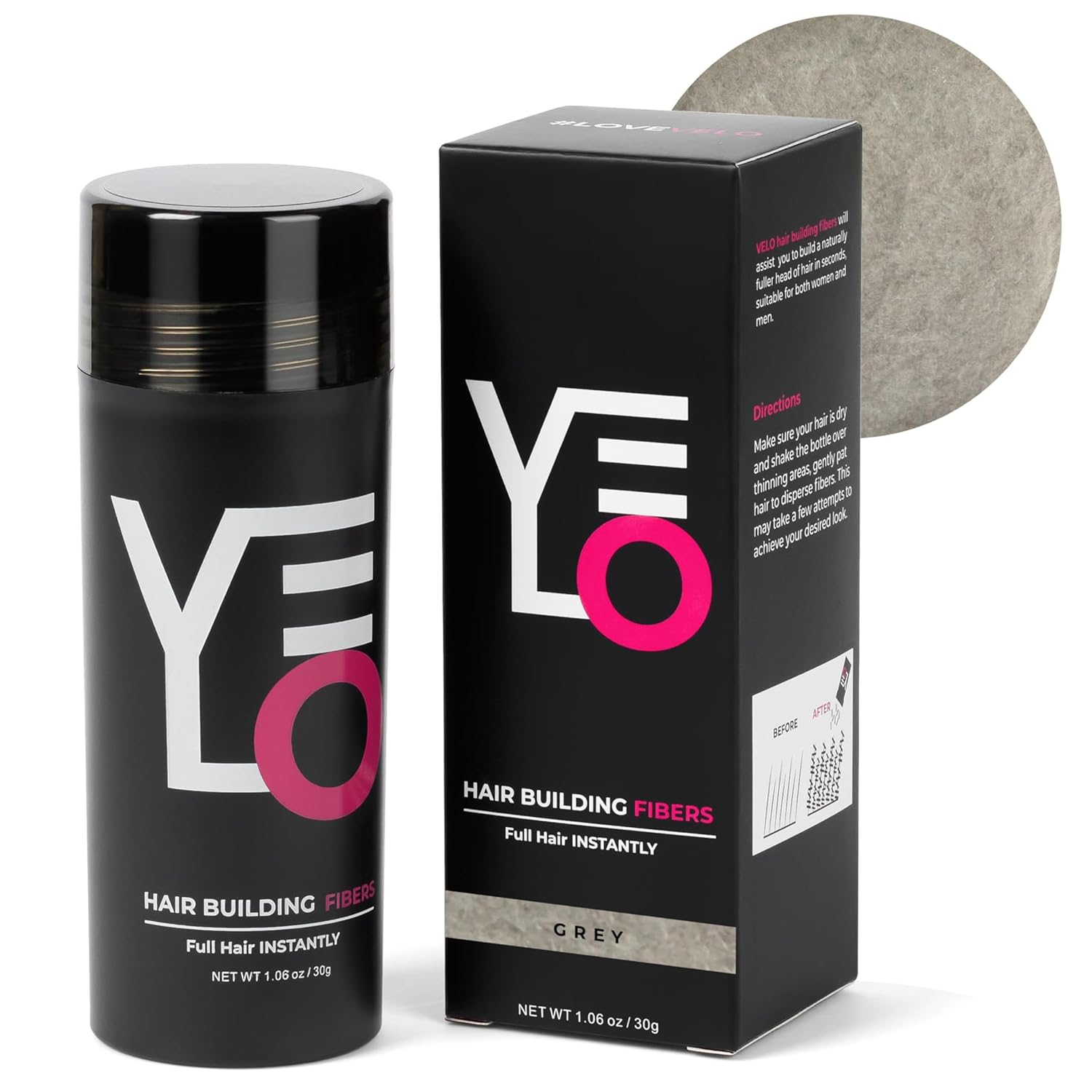 VELO Hair Building Fibers for Thinning Hair – GRAY Hair Fibers for Men & Women – Covers Bald Spots, Hairline Powder, Hair Thickening Fibers – Hair Filler Powder for Fuller-Looking Hair – 30g