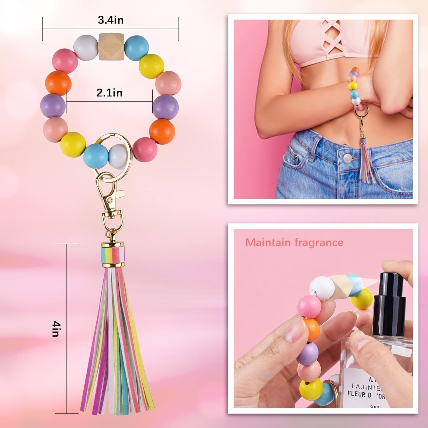 • 【Wristlet Keychain Bracelet】Our makeup organizer bag comes with a detachable wristlet keychain bracelet that features 14 silicone food-grade beads and one natural wooden bead. The high-quality colorful leather tassel adds a pop of color to your bag and can be used to decorate your bags. The keychain bracelet is stretchy, sturdy, and comfortable, making it perfect for most wrist sizes.