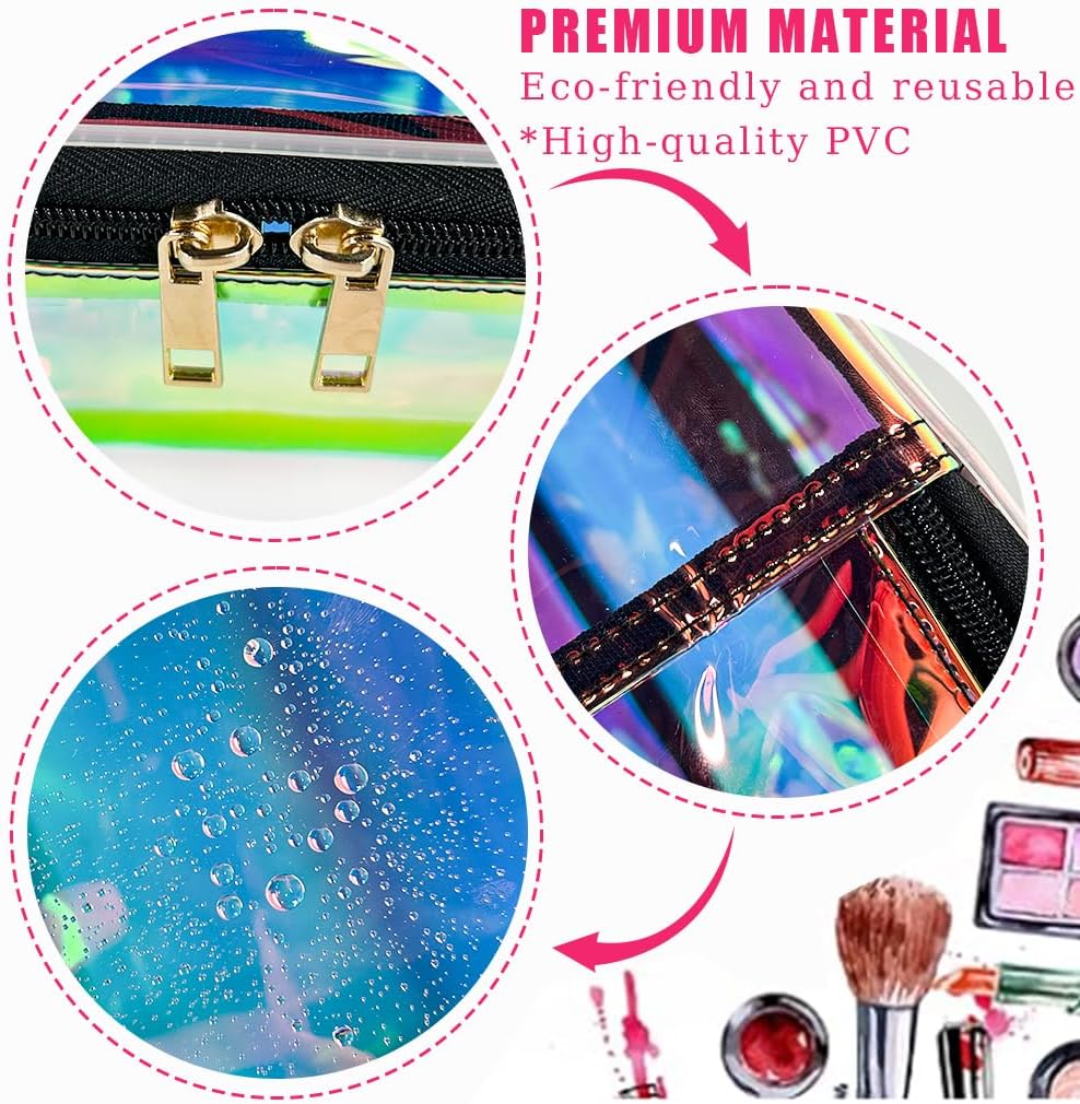 • 🌷【Wide Range of Uses】Our transparent holographic cosmetic bag can not only be used as a storage bag,waterproof bag,gift bag,frequently used item bag,but also can be used to store cash,glasses,keys,portable batteries,etc.This waterproof and dustproof tote makeup bag keeps everything safe and prevents liquid leaks
