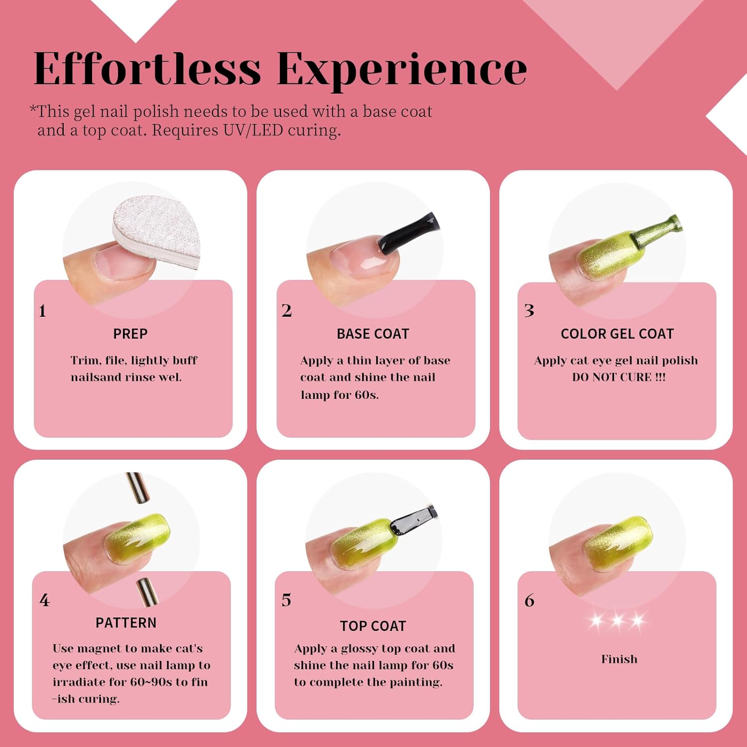 • Achieve professional-quality results from the comfort of your own home. TUTUYU Pink Cat Eye Gel Polish offers easy application and beautiful results every time. Make a statement with nails that are as unique as you are.