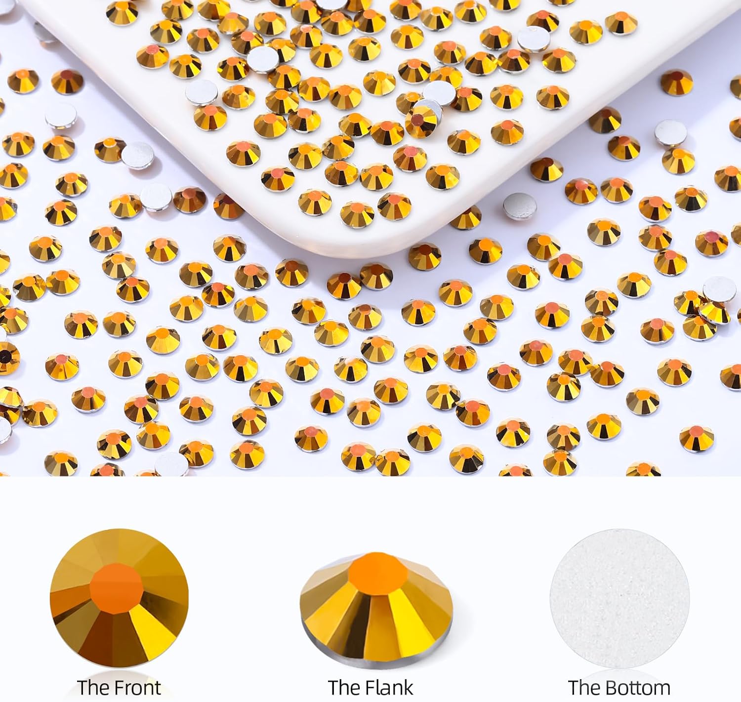 • Product Packaging: Bags packaging SS30 6.4~6.6 MM - 576 Pcs gold flatback rhinestones.