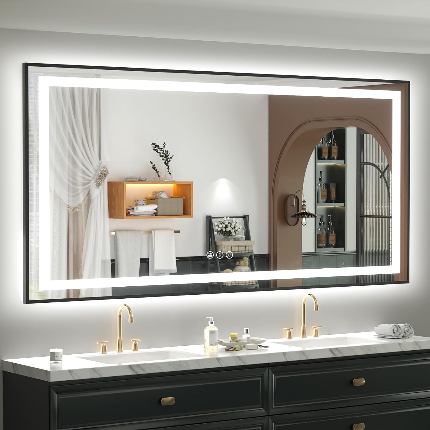 • 【Matte Black Metal Frame LED Mirror】Our led mirror for bathroom have thin and durable black metal frame that provides sufficient brightness and elegance look. It combines practicality and modern beauty, is a ideal for decorating bathroom, living room, bedroom, hair salon and hotel.