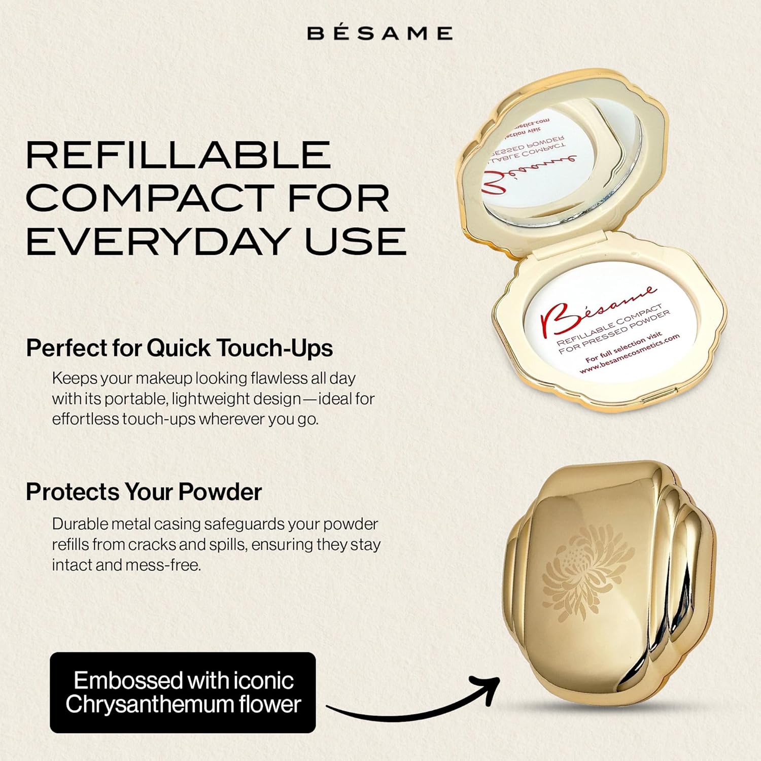• NO POWDER INCLUDED: This refillable compact case has no powder inside; pair it with Besame powder refills, designed for setting makeup, highlighting & adding color