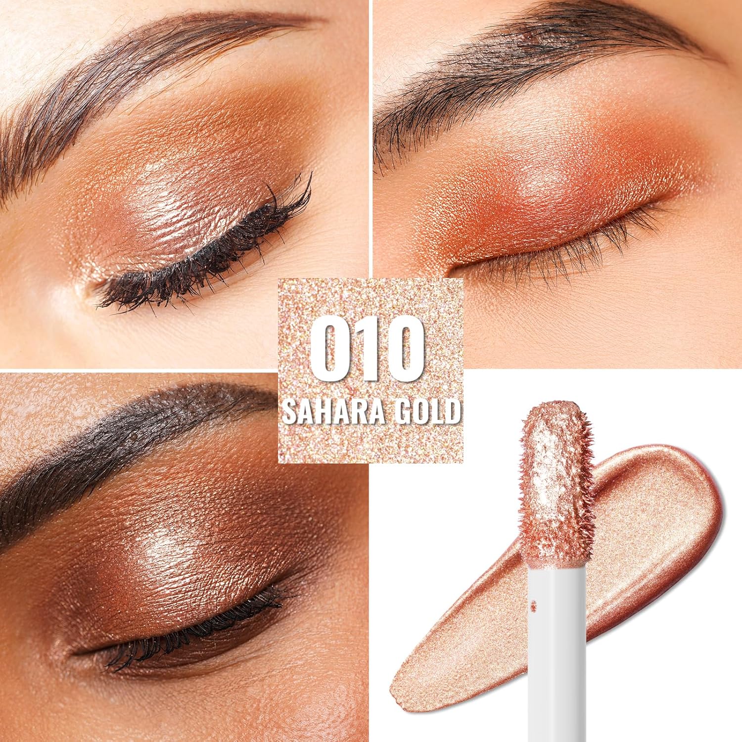 Oulac Liquid Glitter Eyeshadow Metallic Eyeshadow| Gold Liquid Eyeliner Glitter Eye Makeup| Pigmented Lightweight Moisturizing Formula Easy to Remove. Vegan & Cruelty-Free (O10)