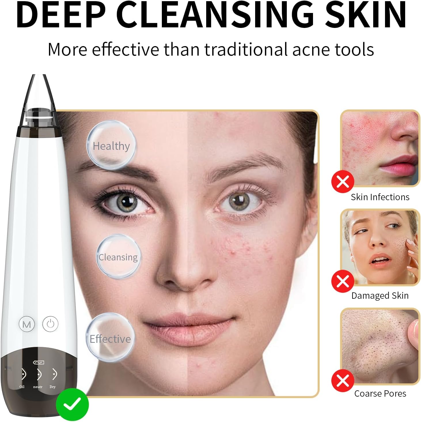 • 【 Blackhead Remover Tools 】Our upgraded blackhead vacuum provides powerful yet gentle deep facial cleansing. It effectively removes blackheads, whiteheads, dead skin, acne,oil and cosmetic aresidue.which can increase blood circulation and skin elasticity, lessen wrinkle, shrink pores, smooth fine lines without hurting your skin.