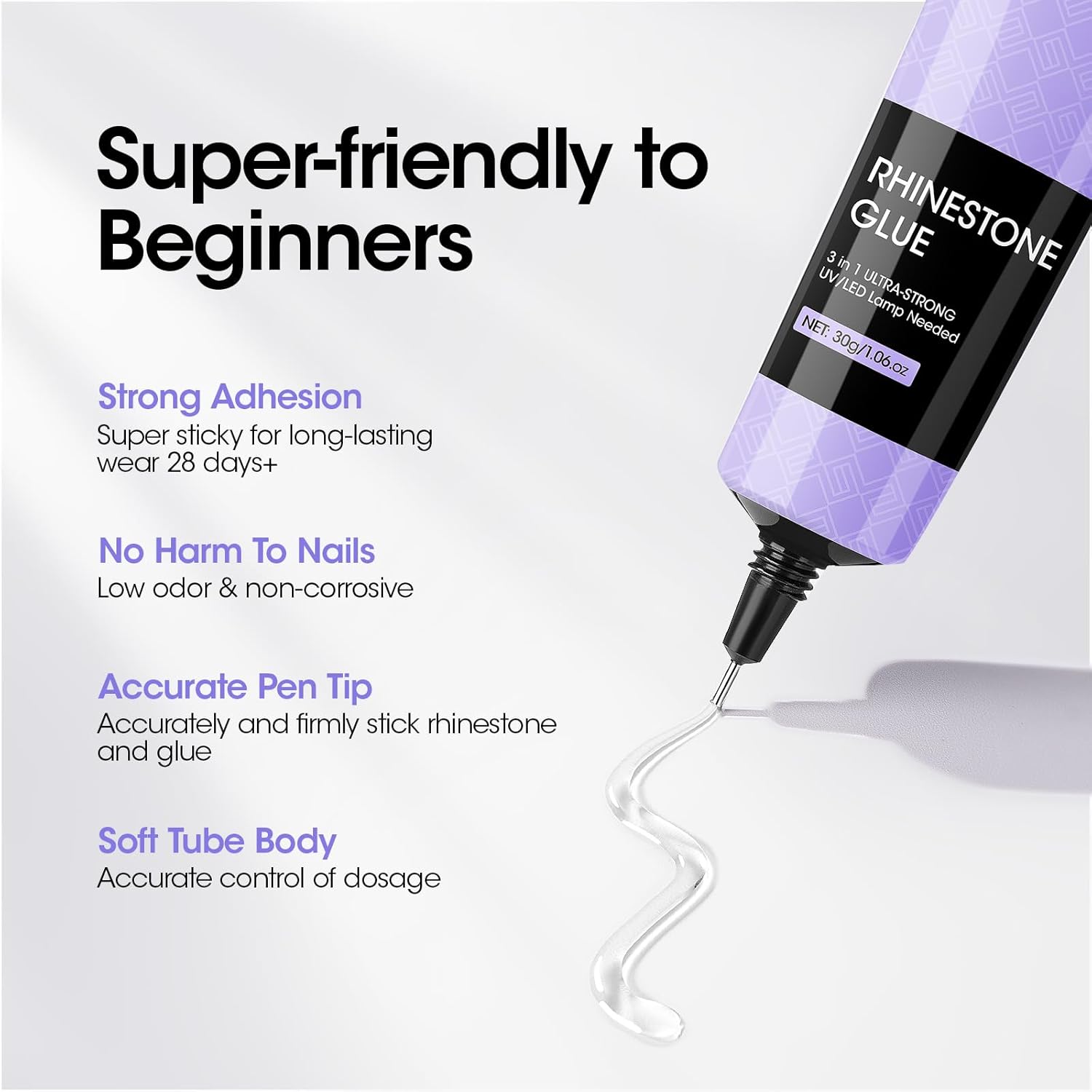 • Healthy Ingredients: Our breathable and lightweight nail diamonds glue gel is crafted using non-toxic ingredients, making it both healthy and low in odor with no harsh chemicals or adhesives. No harm to skin and nails. Please take a skin test first before using it to check for any reaction. Avoid contact with eyes and mouth