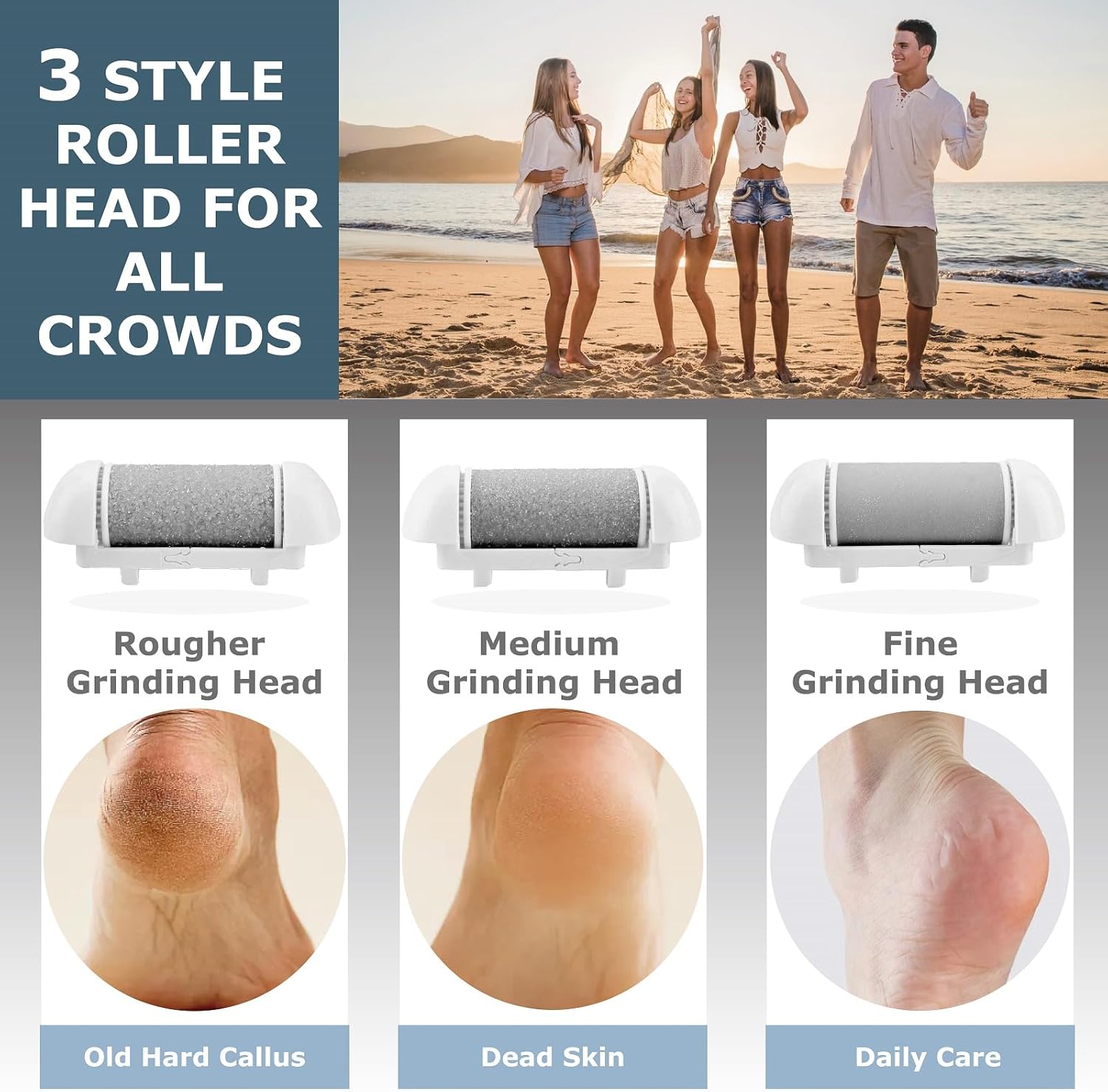 Upgraded Electric Foot Callues Remover, Portable Electric Foot Files with 3 Heads, Rechargeable Feet File for Foot Care, Waterproof Deadskin Remover, Pedicure Tool for Dry and Crack Feet