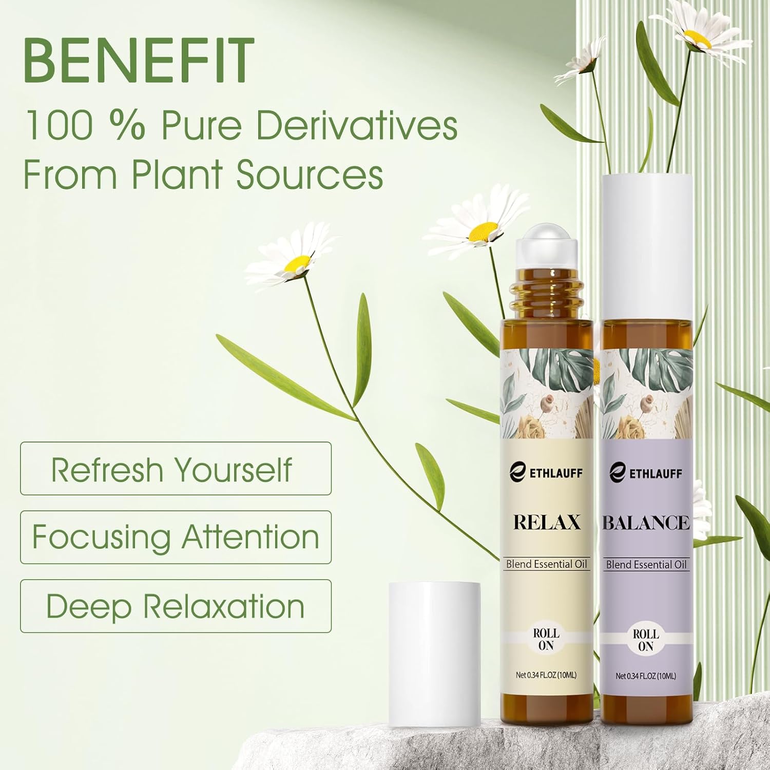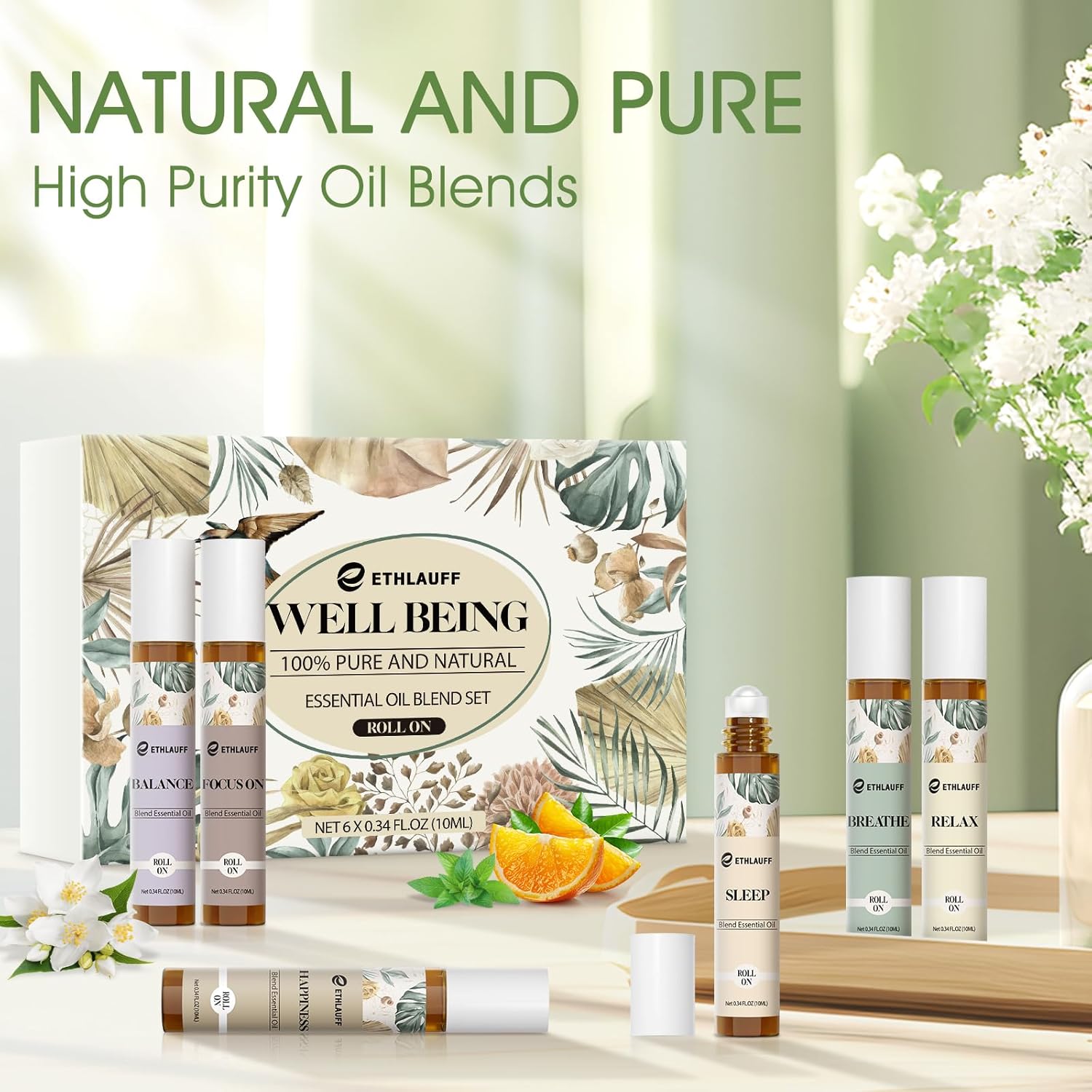 Essential Oils Roll On Set 6 Pack - (Relax, Sleep, Balance,Breathe, Focus on, Happiness) Aromatherapy Oil with Roller Ball, Essential Oils Blends for Skin - Relaxation Gift for Women and Men