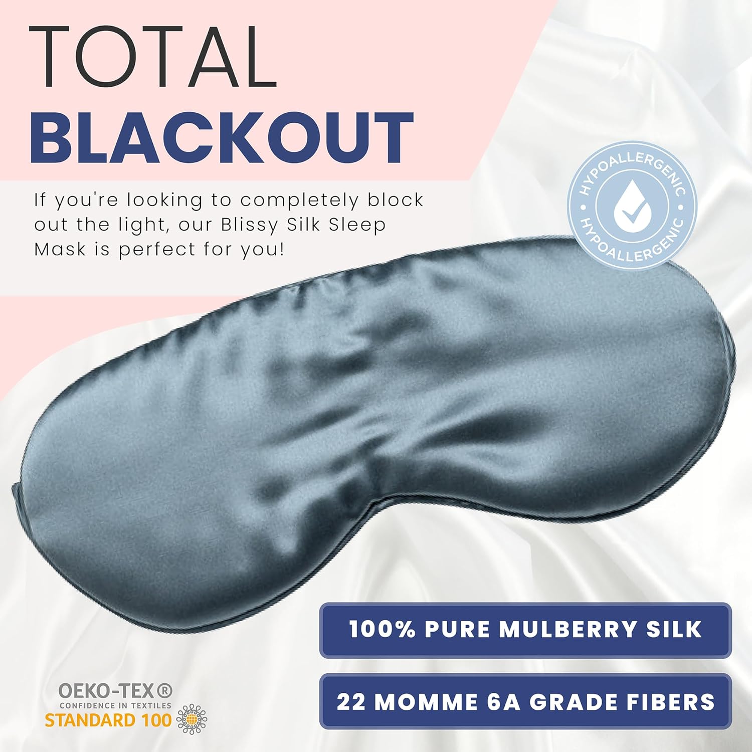 • TOTAL BLACKOUT - If you're looking to completely block out the light, our Blissy Silk Sleep Mask is perfect for you! Made with 100% pure Mulberry silk and 22 momme 6A grade fibers, this mask will keep the light out and help you get a good night's sleep.