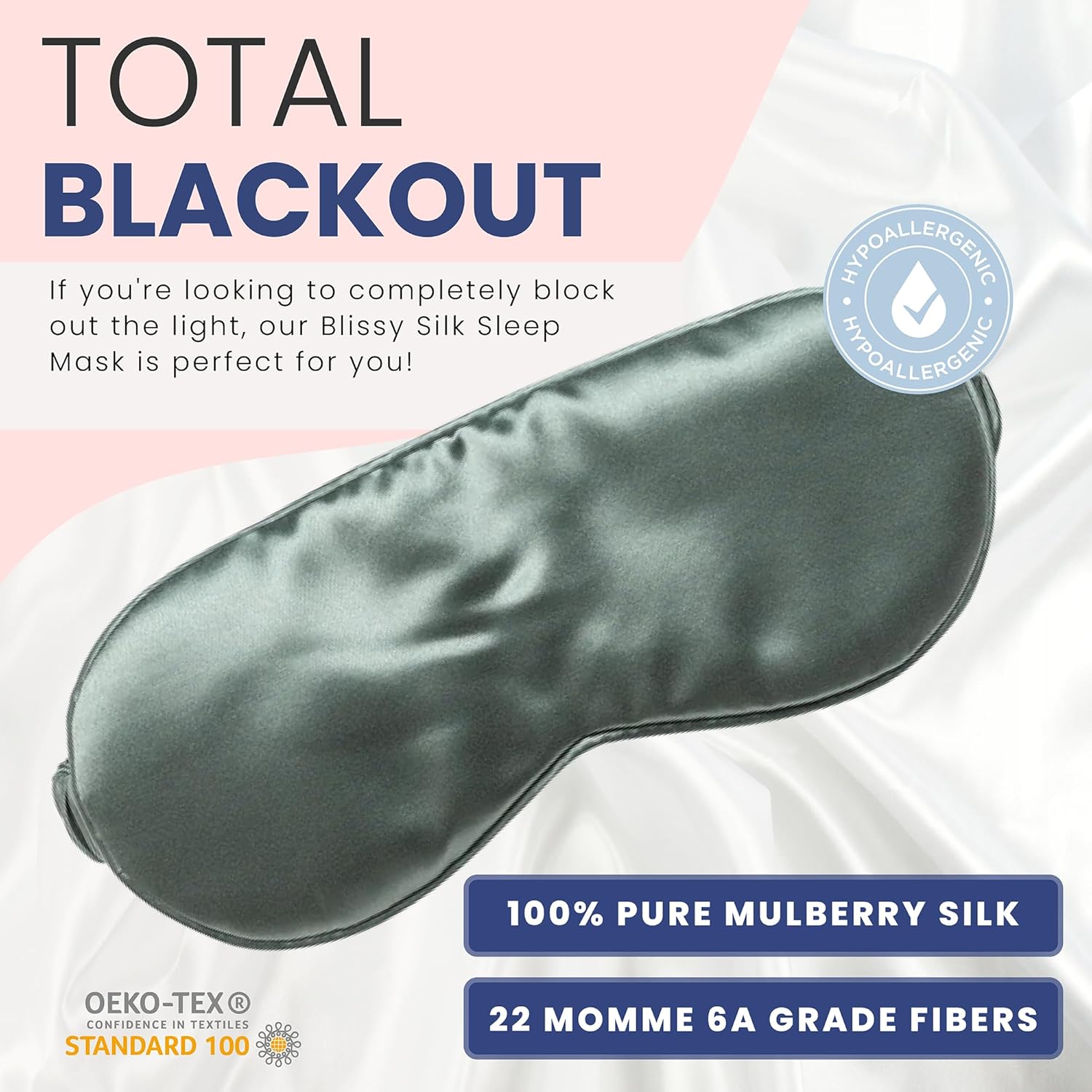 • TOTAL BLACKOUT - If you're looking to completely block out the light, our Blissy Silk Sleep Mask is perfect for you! Made with 100% pure Mulberry silk and 22 momme 6A grade fibers, this mask will keep the light out and help you get a good night's sleep.
