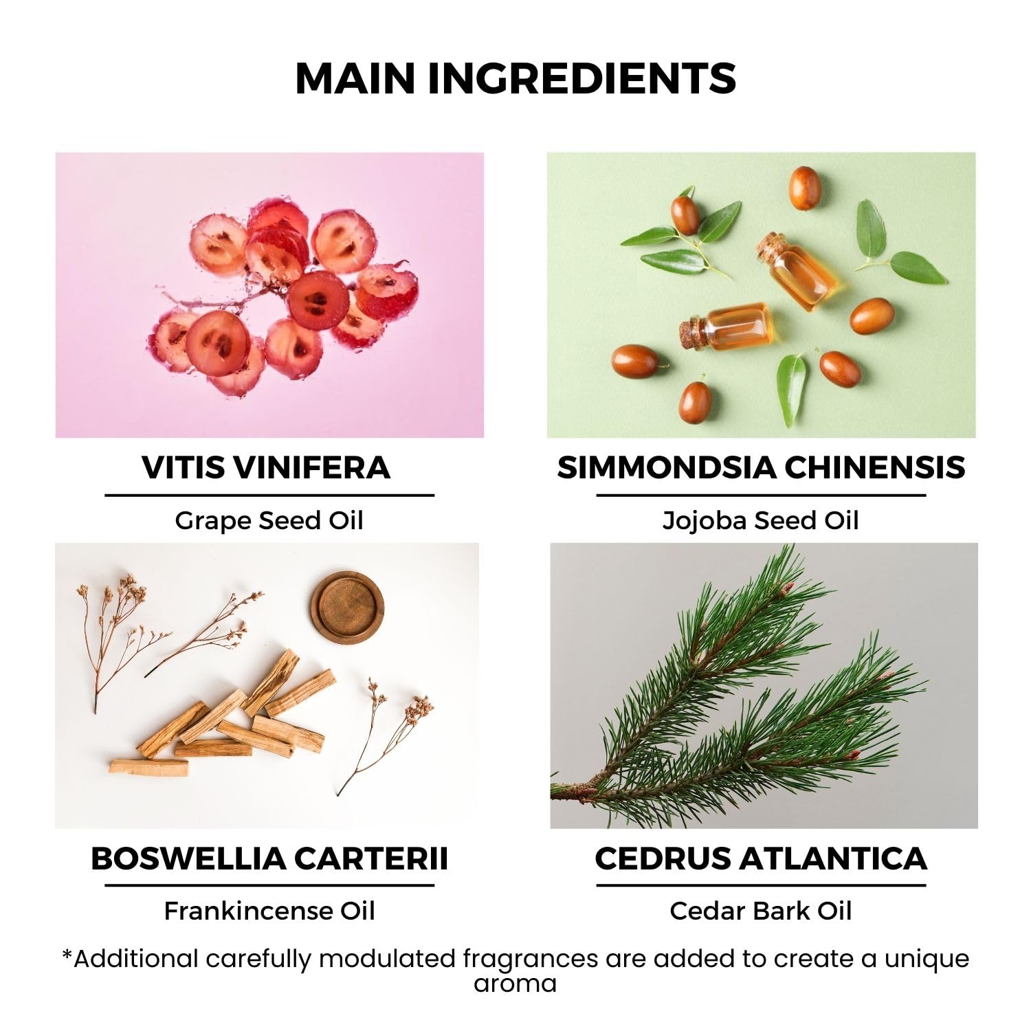 • Fragrance Profile: A fresh, spicy woody fragrance, with a subtle hint of fruit and honey sweetness, and a cooling blend of cedar and ebony throughout