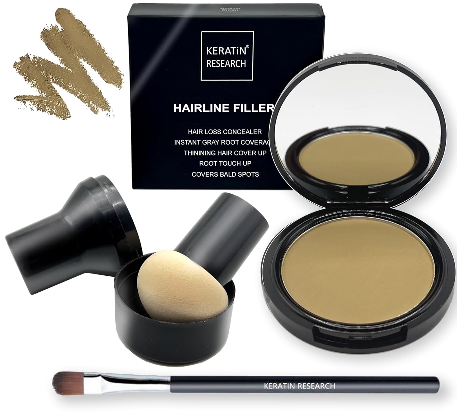 KERATIN RESEARCH Hairline Filler Unisex Mineral Powder Root Touch-Up Hair loss Concealer Scalp & Beard Bald Patch Coverage Fibers for Thinning Hair Waterproof Organic Natural look (DARK BLONDE, XL)