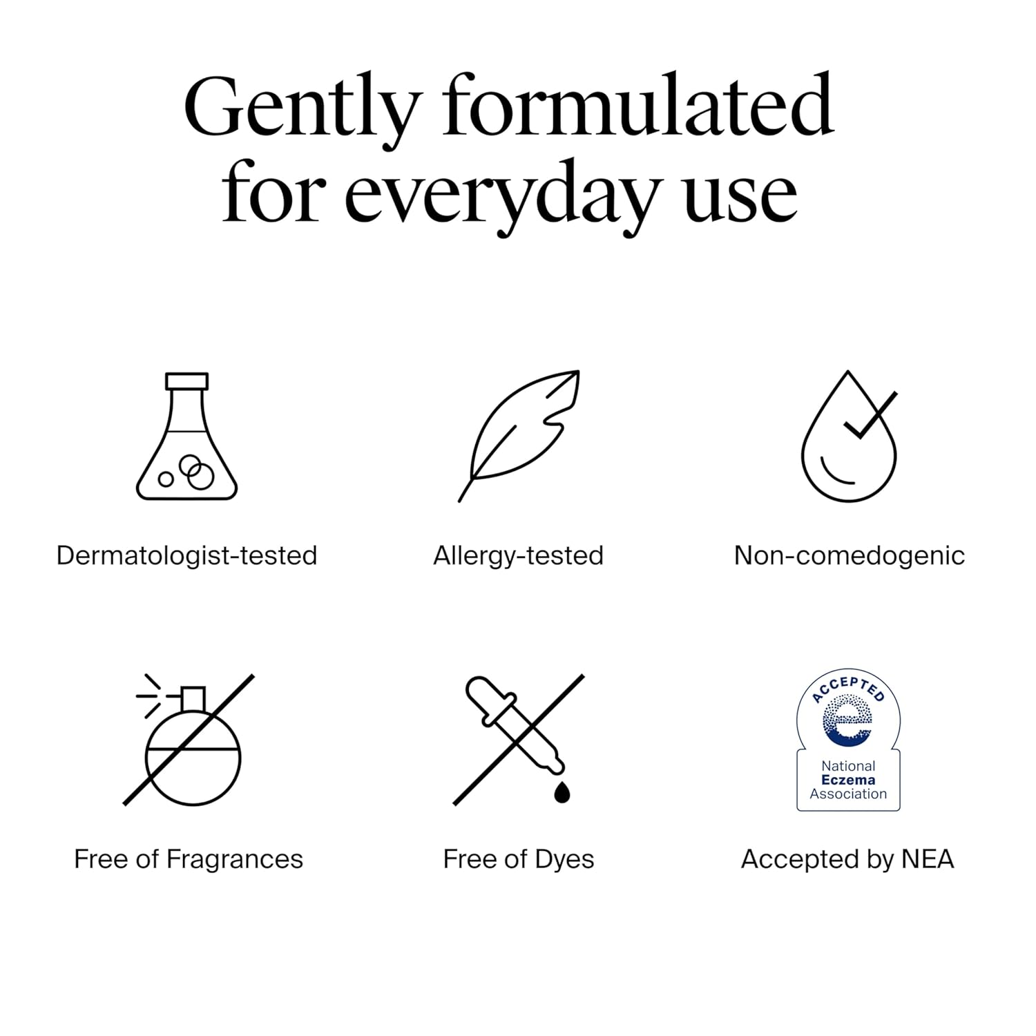 • Facial cleanser: Trial size hydrating gel facial cleanser transforms into a silky foaming lather to remove makeup, dirt, oil, and impurities; fragrance free, non-comedogenic, and suitable for sensitive or acne-prone skin