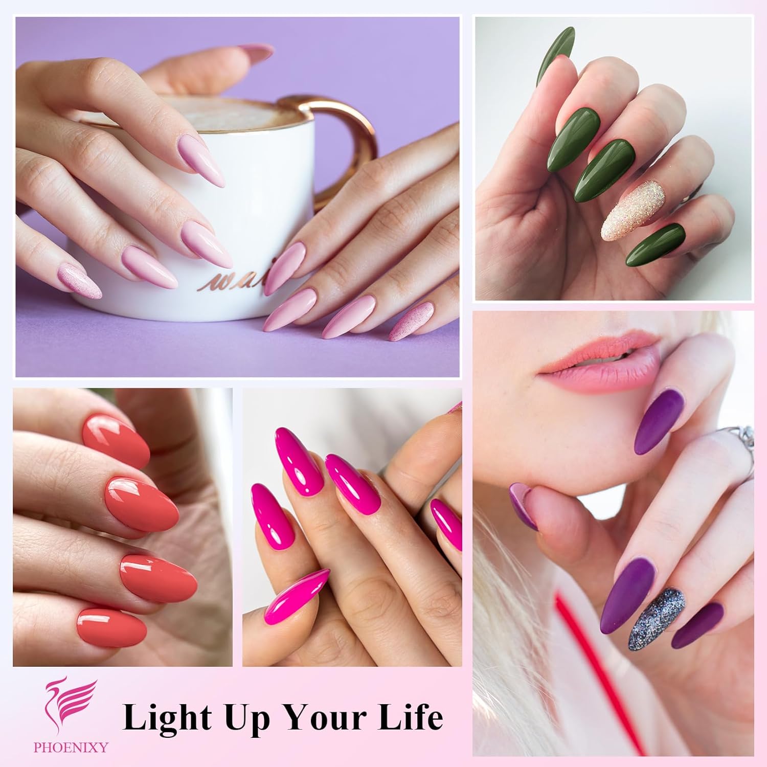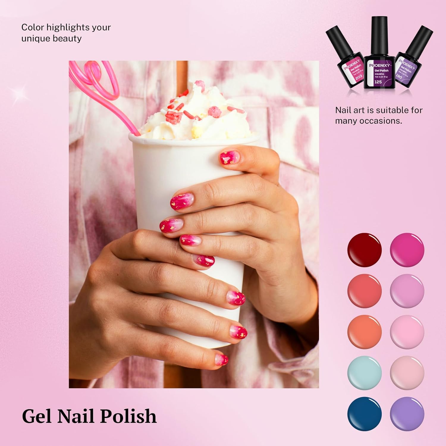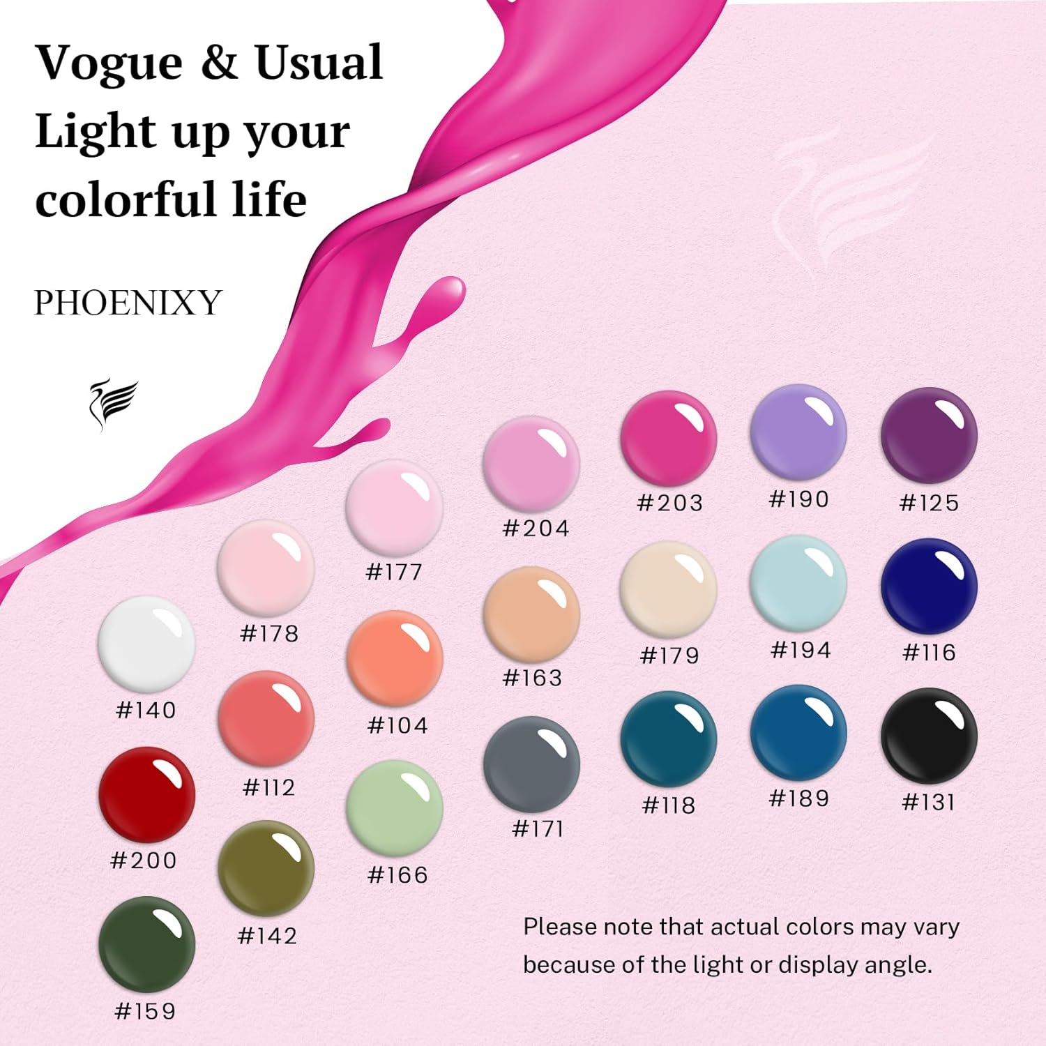 • [Phoenixy Gel Nail Polish Set] Phoenixy gel nail polish set includes 21*7ml gel polish, 7ml base coat, 7ml top coat, and 7ml matte top coat. A cost-effective kit for manicure beginners and lovers. With some practice, you can get beautiful nail art for all seasons and occasions- parties, holidays, work or daily life.