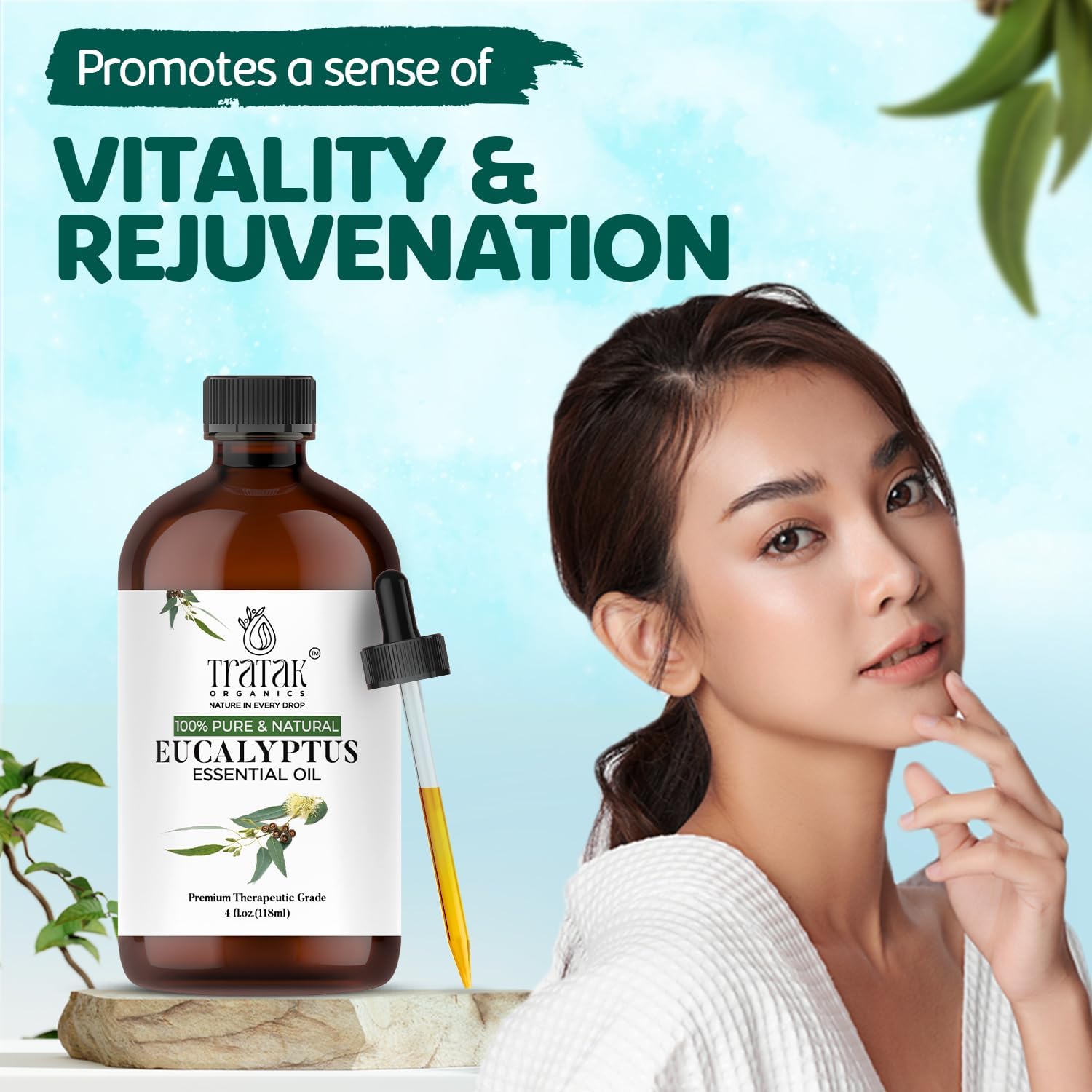 • PACKAGE INCLUDES: Pack of 1 Tratak Eucalyptus Essential Oil with dropper, Net Weight: 4 Fl Oz
