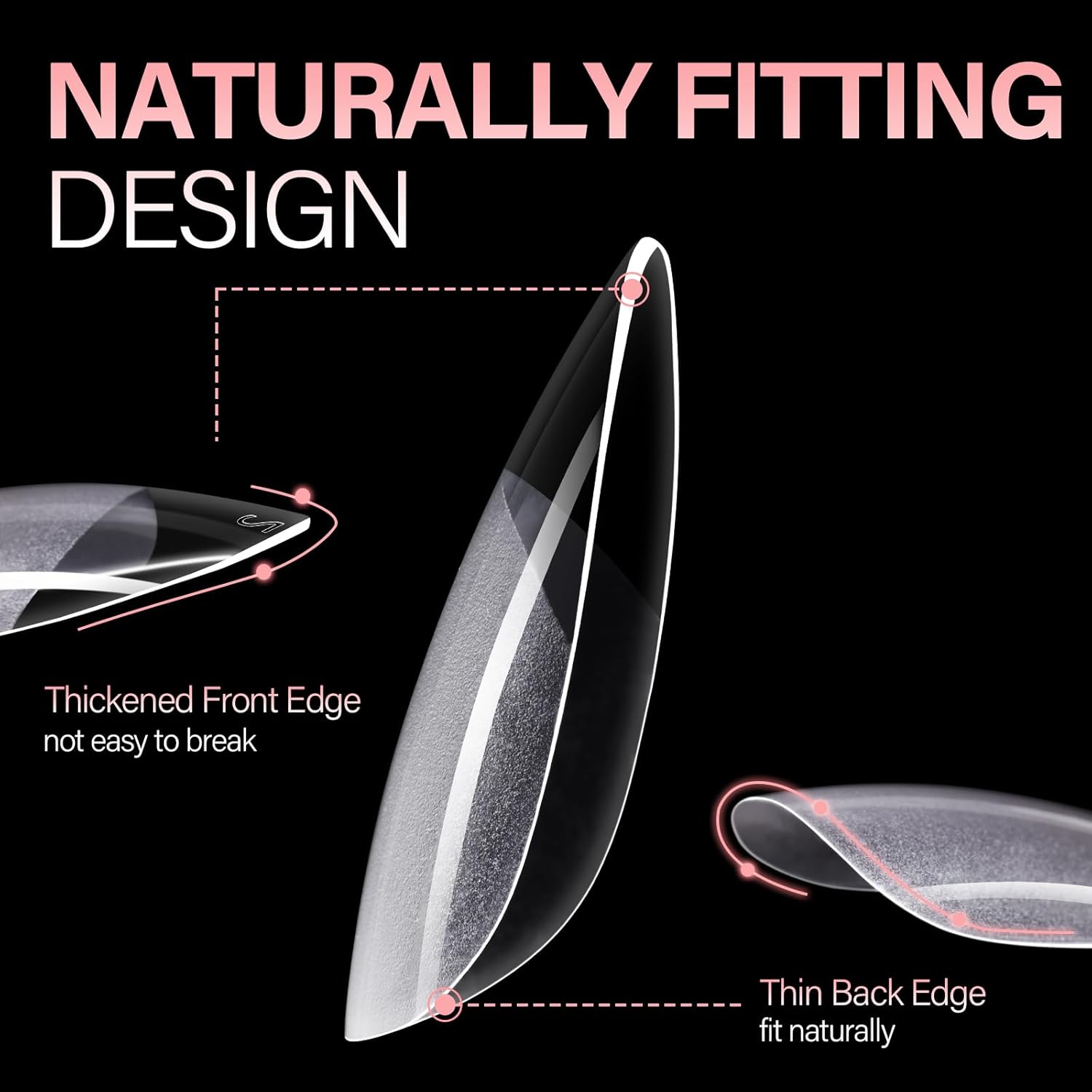 AILLSA Short Oval Nail Tips Full Cover Clear Gelly Nails Tip Half Matte Acrylic Tips Pre-Filed Fake Press on Nail Tips for Extension Home DIY Salon Manicure 216PCS 12 Sizes
