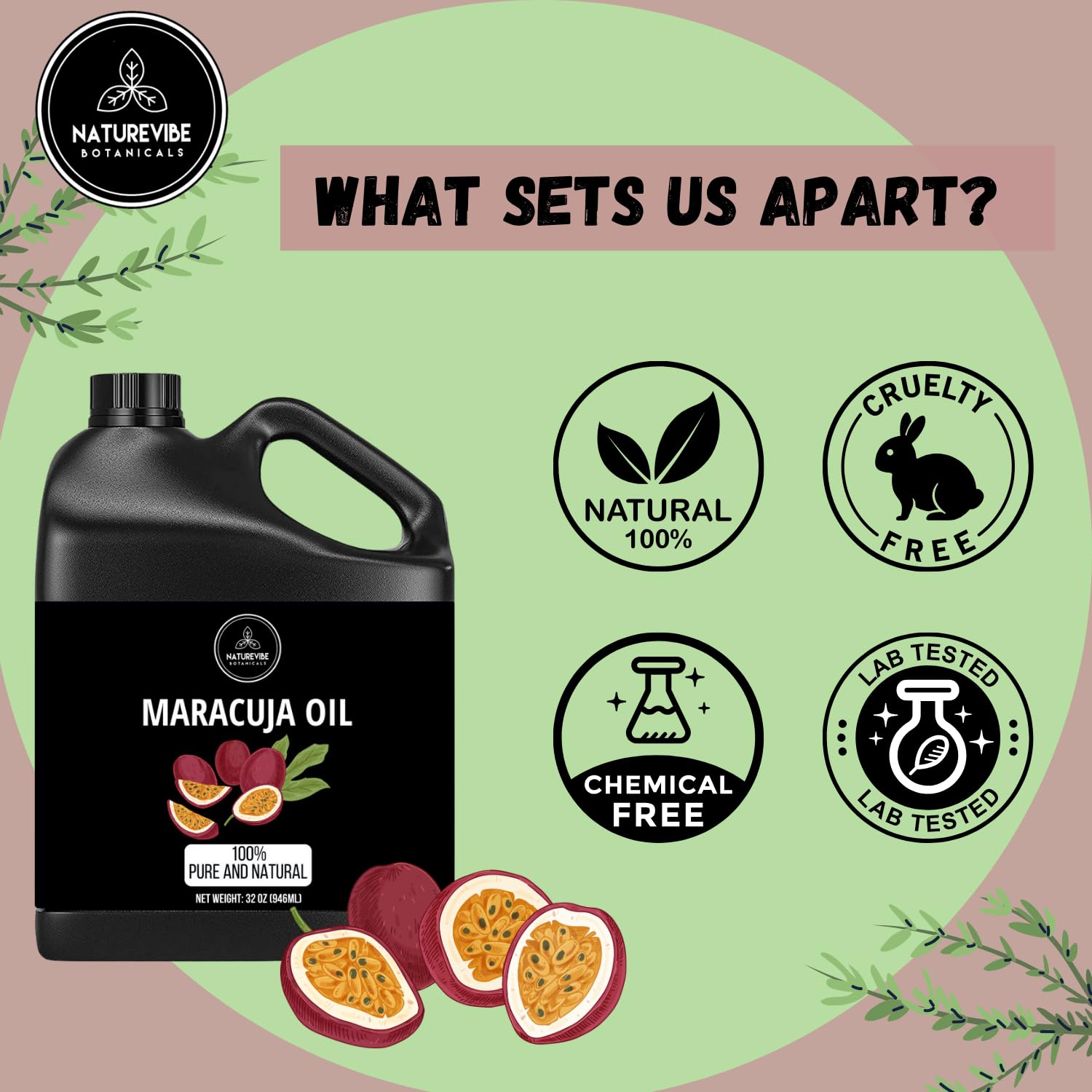 • ✅Naturevibe Botanicals Maracuja Oil 32 Ounces 100% Pure & Natural Cold Pressed Passion Fruit Seed Oil | Premium Grade Oil for Hydrating and Soothing | Body Oil Great for Hair, Skin & Nails (946 ml)