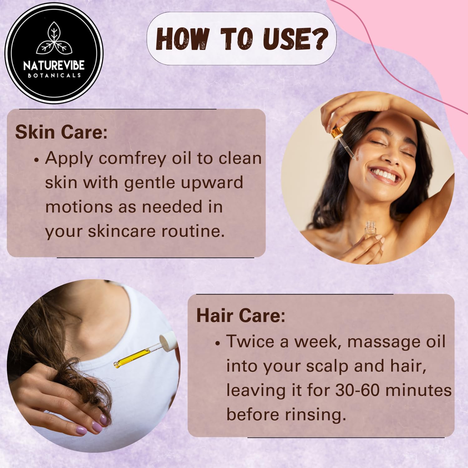 • ✅Comfrey Oil by Naturevibe Botanicals comes in a resealable jar to maintain its freshness throughout. Naturevibe Botanicals Comfrey Oil is a cold pressed oil which does not contain fillers or additives and is 100% pure which is used as a body moisturizing oil for face, hands and nails by both men and women.