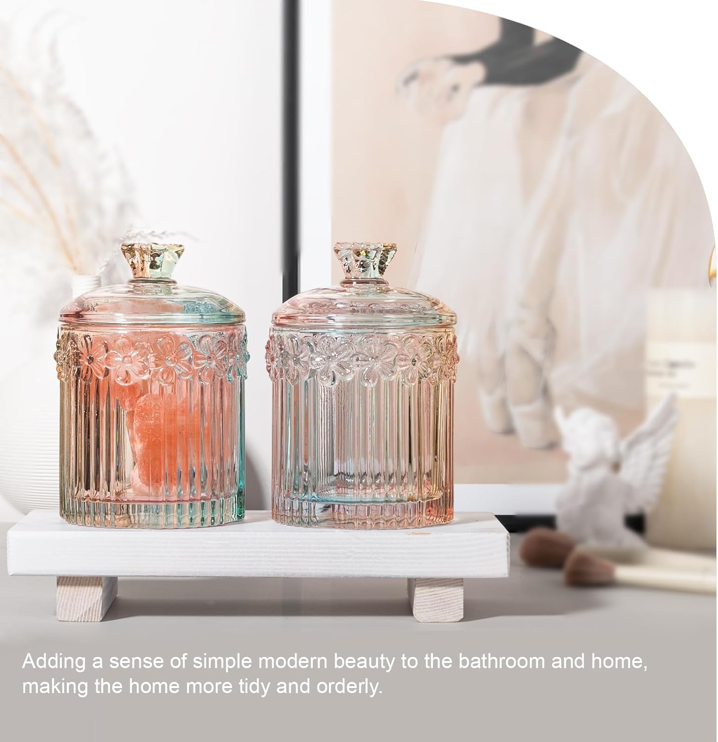 rejomiik 2 Pack Qtip Holder Glass Apothecary Jars with Lids Set Bathroom Canisters Dispenser Organizers and Storage for Cotton Swabs, Balls, Pads, Floss Picks, Candy, Rainbow