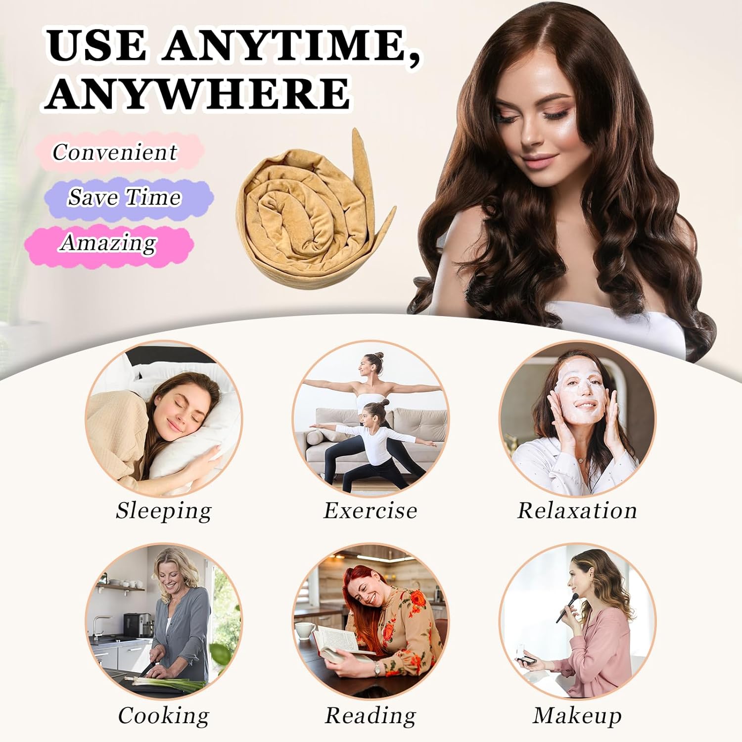 • SOFT VELVET MATERIAL: This no heat overnight curls headband features a velvet material on the outside and coral fleece material on the inside. It is a very soft hair curlers comfortable to sleep in, non-slip texture that is odorless and does not harm your hair. Additionally, it doesn't create any rubbing noises when you curl your hair and lay on your bed. Wake up with straight hair that transforms into beautiful natural waves