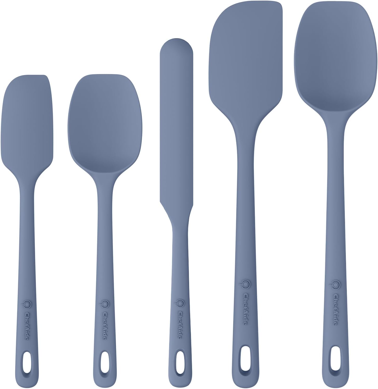 5 Pieces Silicone Spatula Set, Food Grade Rubber Spatula, Upgrade Strong Handle with Ergonomic Grip, Heat Resistant Up to 600°F for Nonstick Cookware, Cooking Blue