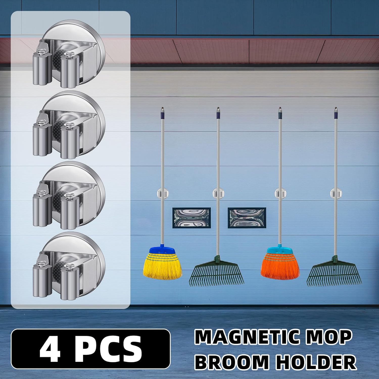 • Vercraft 4 Pcs Magnetic Mop Broom Holder Movable Magnetic Broom Holder Rack, Magnetic Holder Anti Slip Wall Mounted Utility for Cleaning Tools, Garage, Kitchen, Laundry, Garden (Silver)