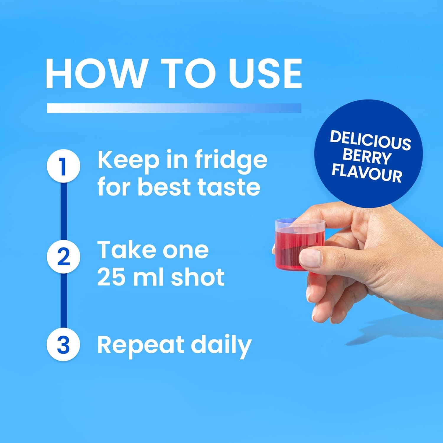 • 60-DAY SUPPLY: Three 500 ml bottles for a 60-day supply with a 25 ml daily dose; enjoy the delicious Natural Berry flavour, sugar-free, with 100% natural flavour and colour; keep refrigerated for optimum taste; made with 100% recyclable packaging