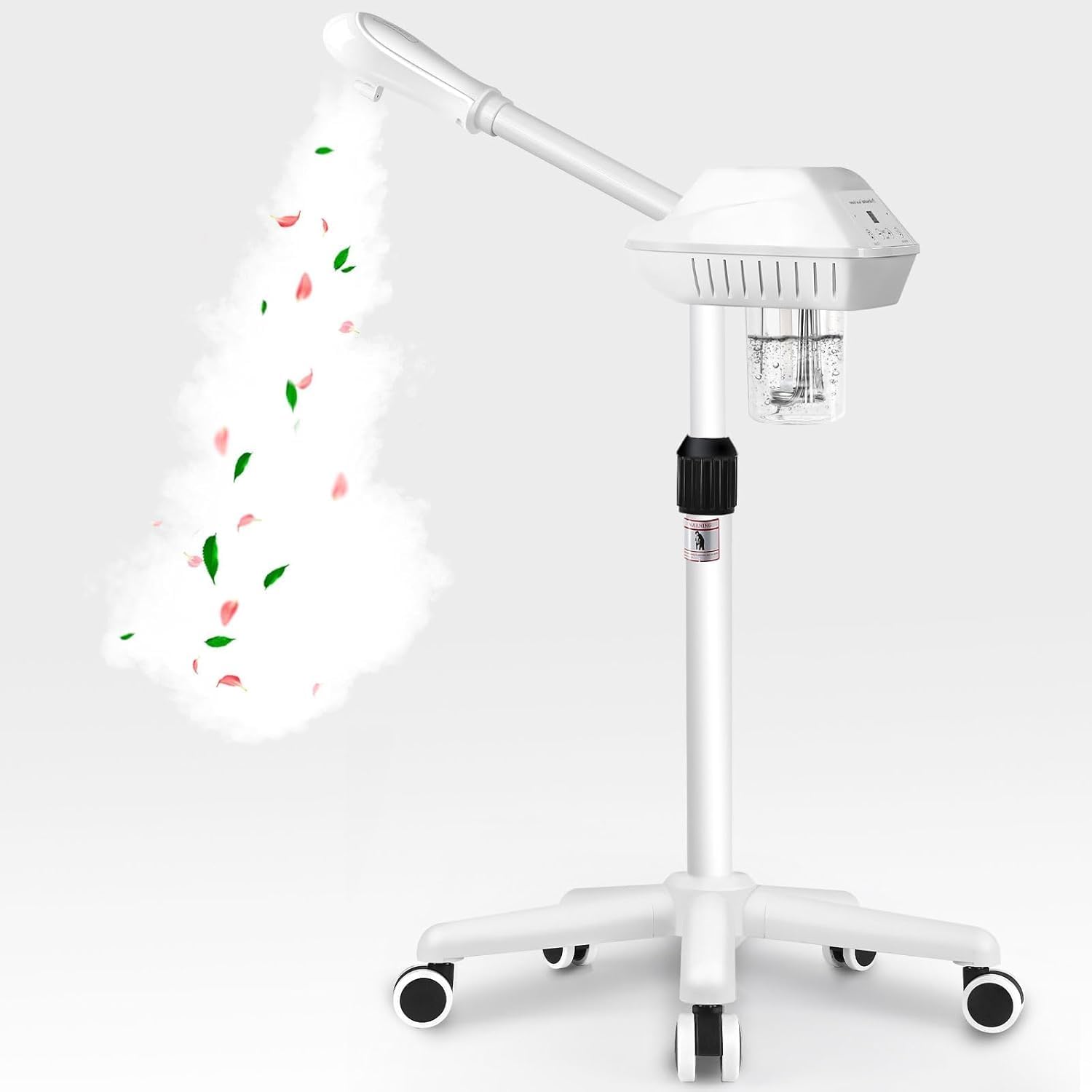 • 【Facial steamer on wheels】Solid and long-lasting base, 360° wheels make it moves smoothly, easy to install and remove. Working quietly.