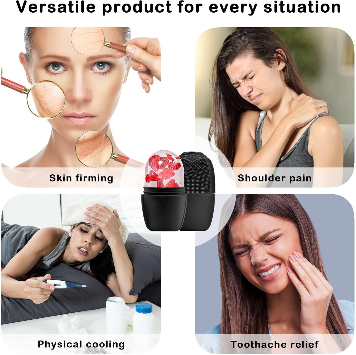 KOGITI Ice Mold for Face & Eye, Beauty Facial Roller, Puffiness Relief Massage Skin Care Tool, Ice Cube Holder (Brush-Black)