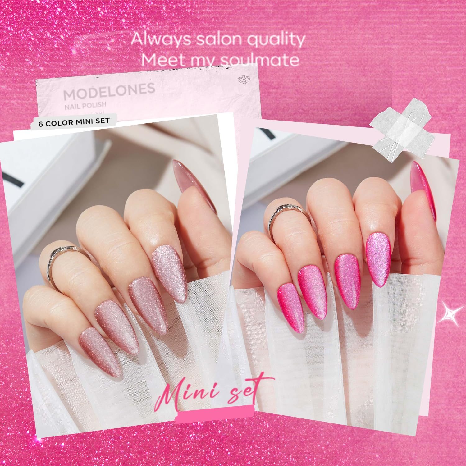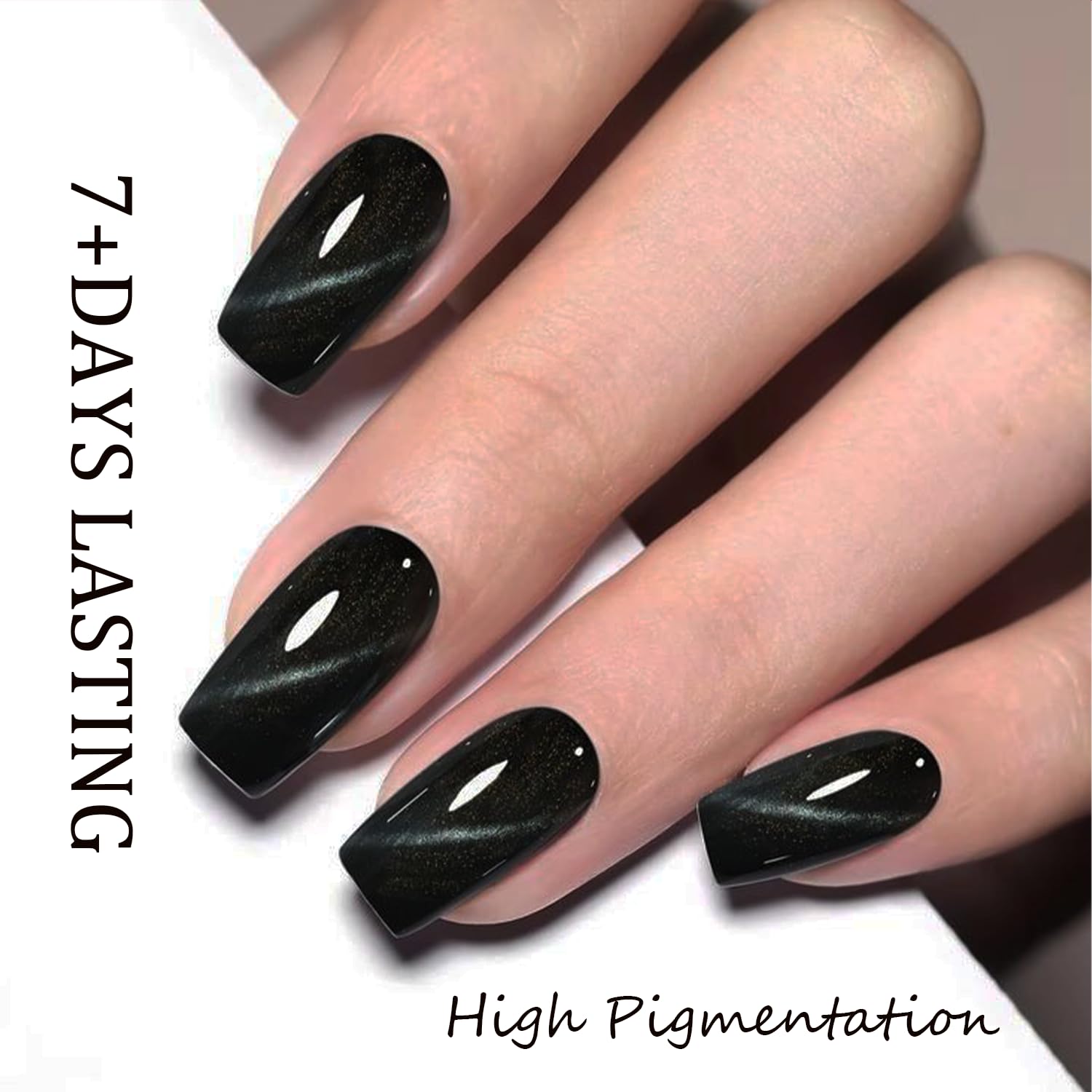 • Tips: Hold the magnetic stick 3-5mm above the surface for 5-10 seconds to achieve your desired effect! [ What You Get]: Black Red Colors of Semi-transparent Holographic Glitter Cat Eye Gel Nail Polish (5 ml/ 0.17 fl. oz each) + 1 Magnetic Stick for various cat eye designs. Each shade of Modelones cat eye nail polish is expertly mixed with metallic magnetic glitter powders for a stunning, shiny finish. Different angles create different visual effects. Practice makes perfect!