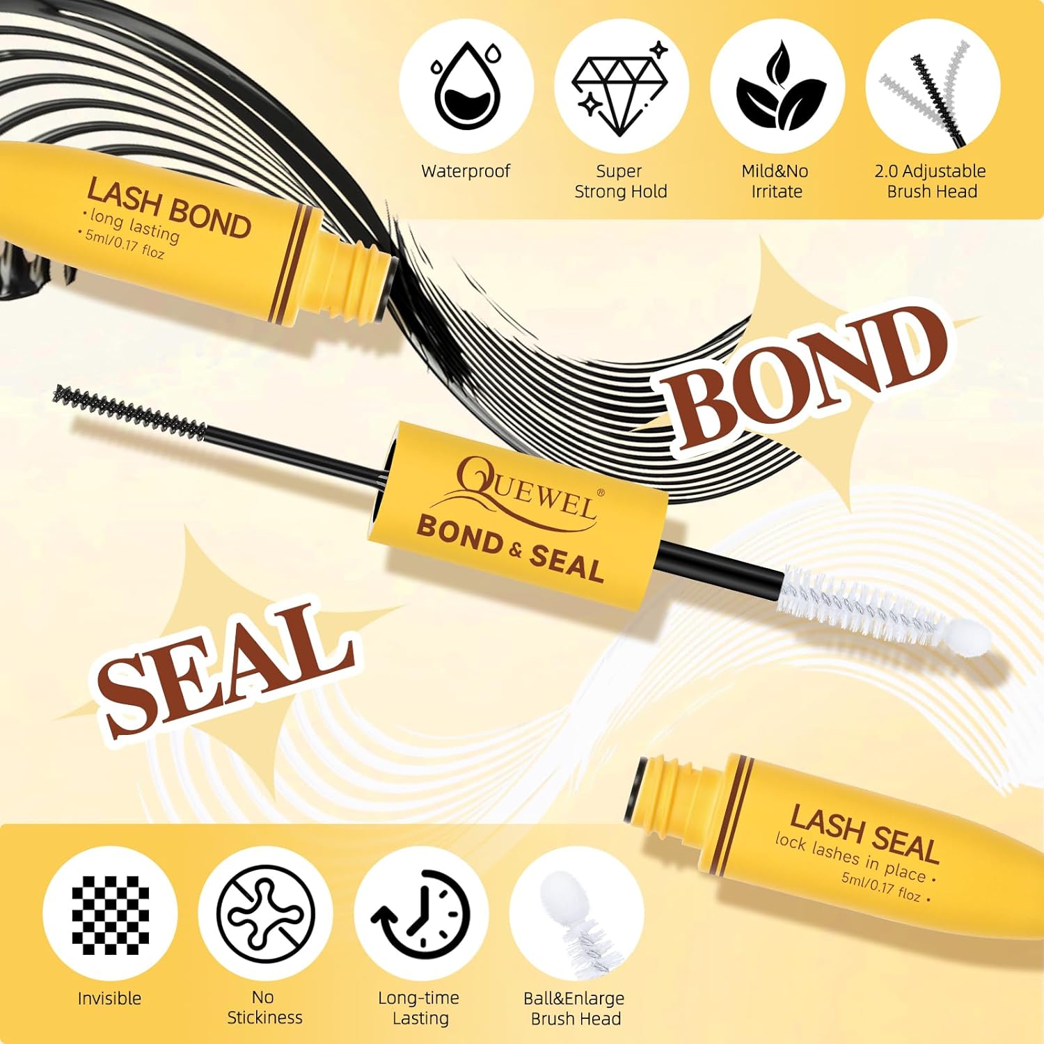 • Lasting Hold and Non-irritating: 2-in-1 lash bond and seal designed. On one side is lash bond with spiral mini individual lashes brush head, which makes each eyelash evenly brushed with lash cluster glue; on the other side is lash seal with the ball and enlarged brush head, which can effectively eyelash cluster longer. The upgraded formula is mild and non-irritating, and can also be used with confidence for sensitive eyes
