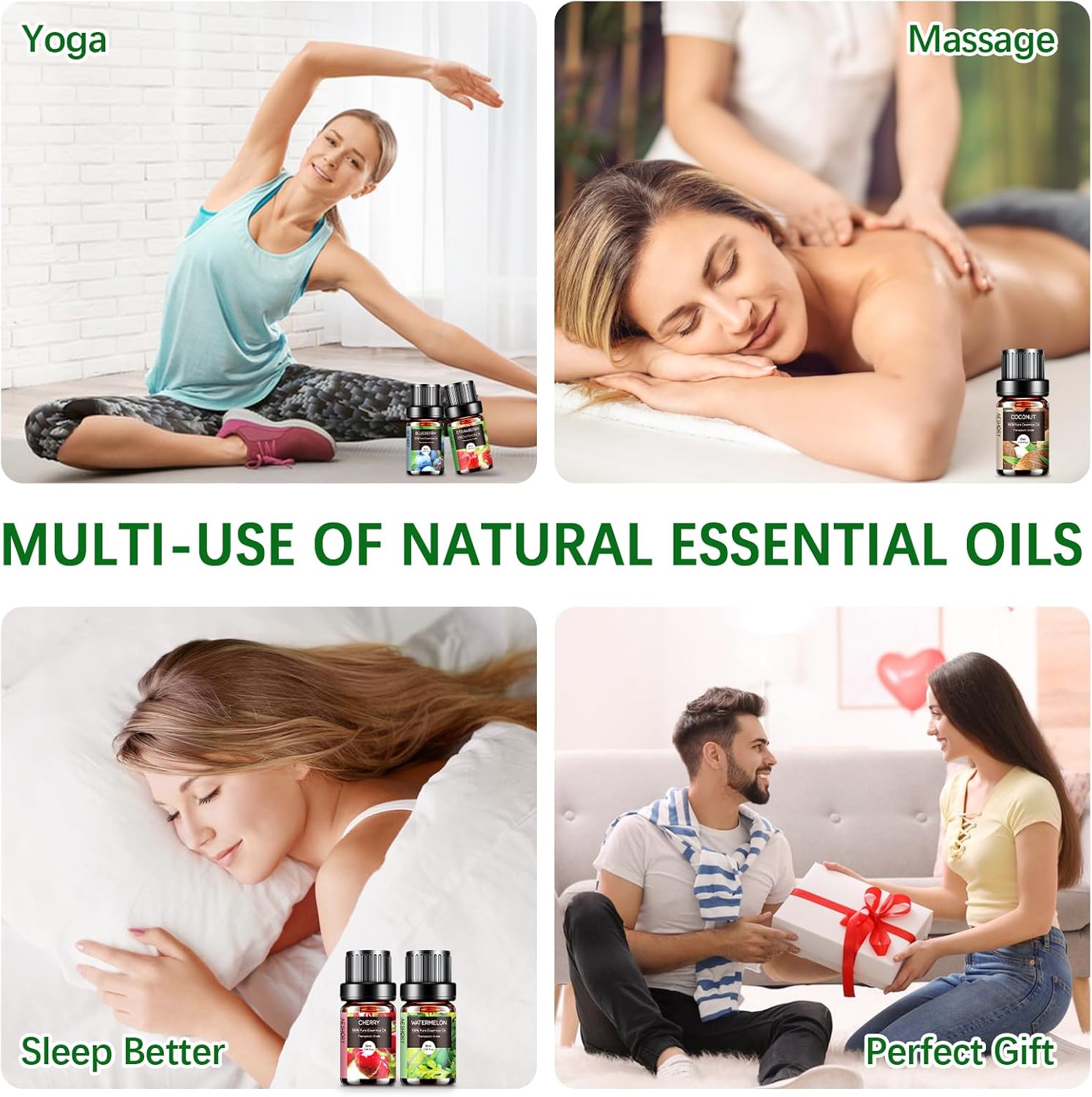 • 🥥【Multiple Uses】These essential oils can be used for aromatherapy, diffuser, massage, skin & hair care. Simply add a few drops to any diffuser and fill your entire room with that aroma, suitable for home care (large room, bedroom, living room, bathroom), office, outdoors, campground, yoga room and spa for a whole day relaxation.