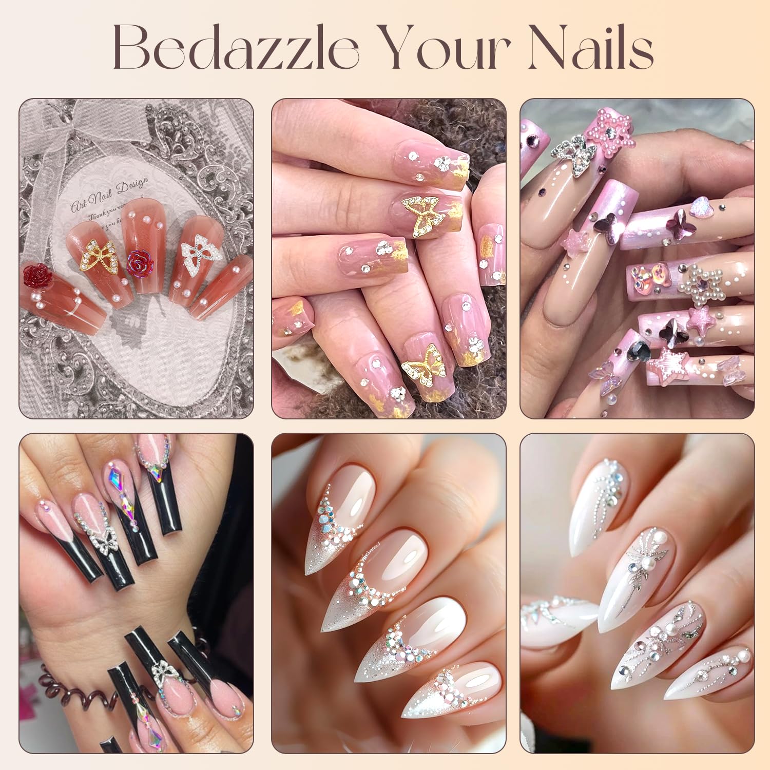 • ✨Lastest Charming Design -- These nail charms are designed with a butterfly shaped with crystal-encrusted, which makes these charms delicate and exquisite. Different sizes flatback rhinestones and pearl can assist you to create a eye-catching nail design. This kit is perfect for your nail decoration, making your nail art more shiny and attractive.