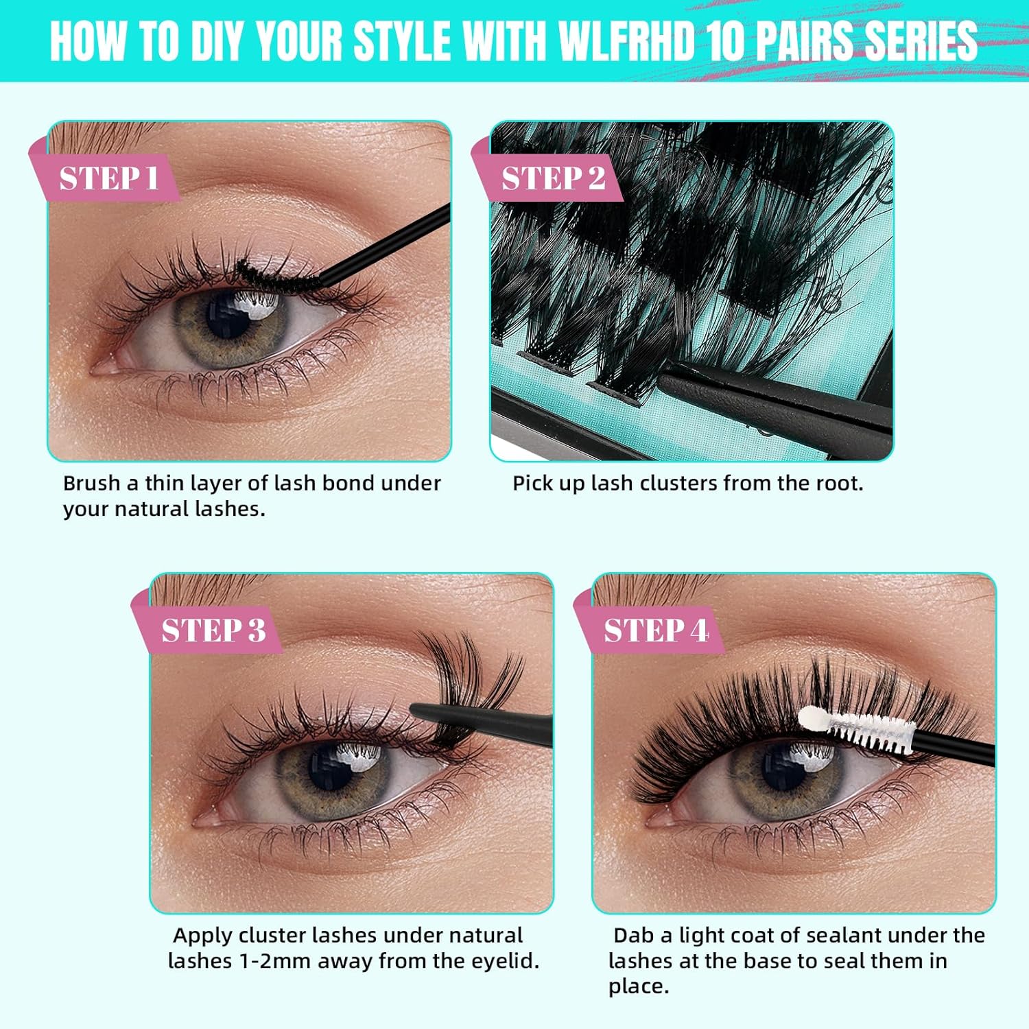 • 【Easy to Apply】:Firstly,curl your natural eyelash,gently brush your own eyelash with lash glue,then use the tweezers to pick up eyelash extension from the bottom of the false eyelashes,and apply the lash clusters under your natural lashes,finally brush the cluster eyelashes with the lash sealant.
